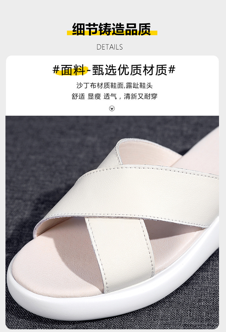 크로스 보더 샌들 여성용 정품 가죽 두꺼운 슬리퍼 여름 복장 2023 여름 신상품 모든 매치 샌들 플랫폼 웨지 샌들