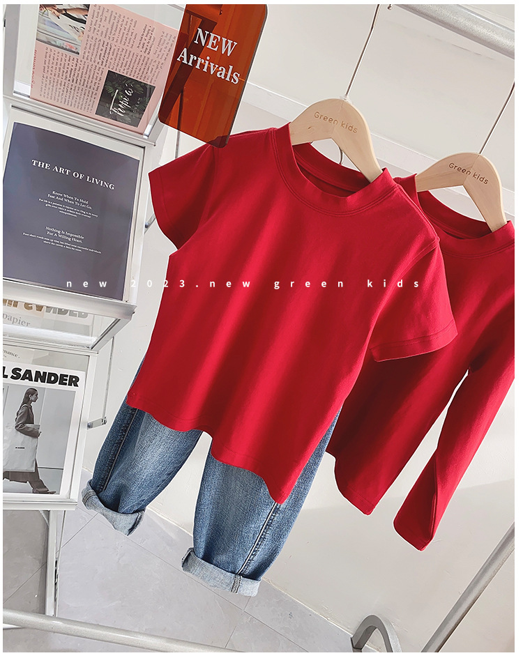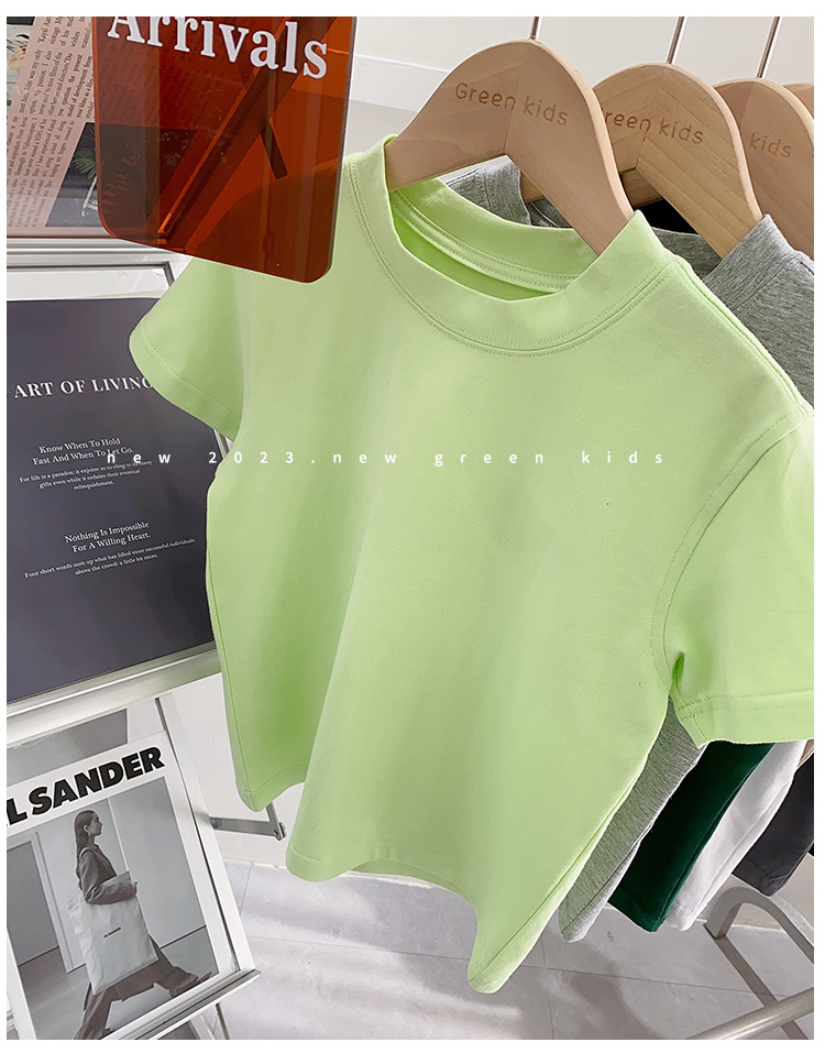 아동용 면 반팔 티셔츠 2023 봄과 여름 새로운 스타일 소년과 소녀를위한 트렌디 한 중간 및 큰 어린이를위한 세련된베이스 셔츠스토어 가기