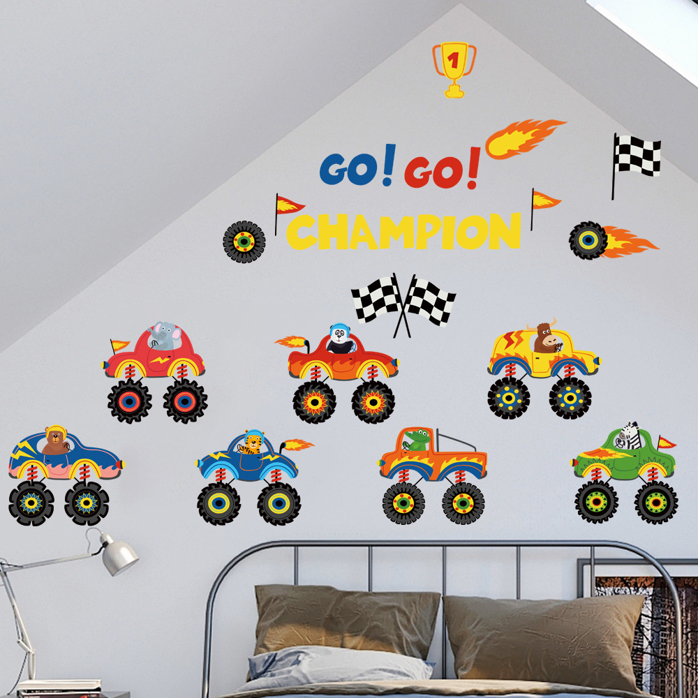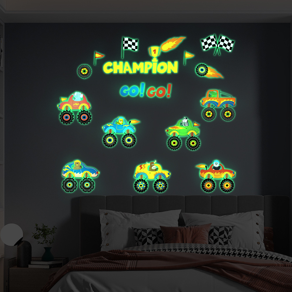HP-YG014 만화 동물 오프로드 차량 발광 스티커 어린이 방 벽 발광 스티커 장식 벽 스티커 도매스토어 가기