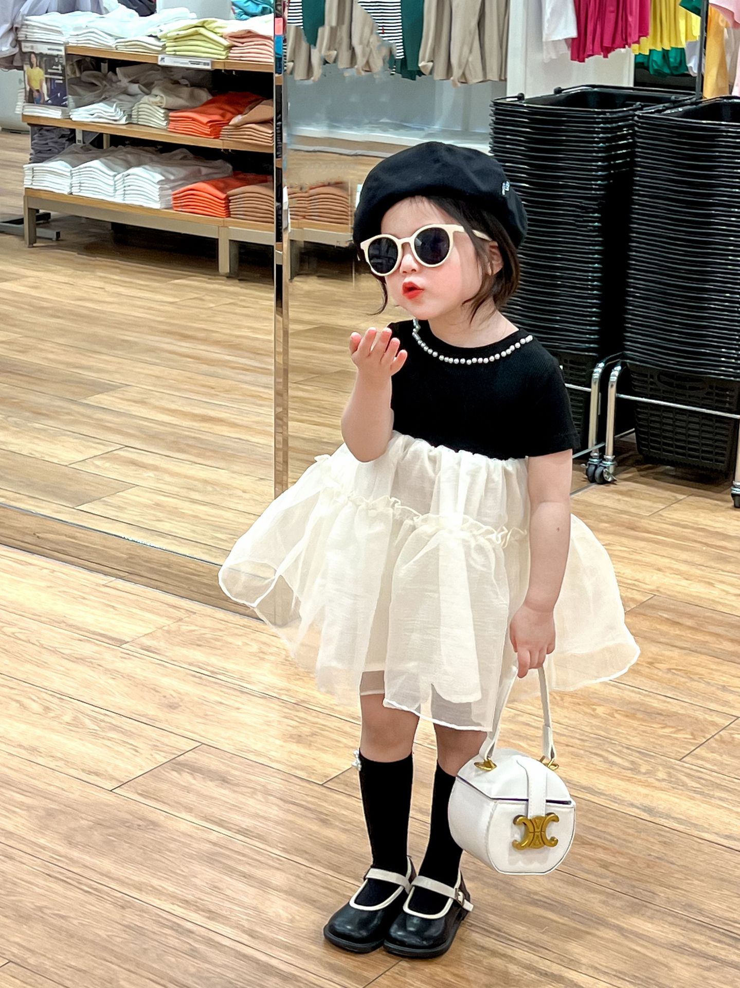 Miaoxuan 아동 의류 소녀 여름 의류 원피스 2023 새로운 어린이 치마 여름 반팔 바느질 소녀 공주 치마스토어 가기