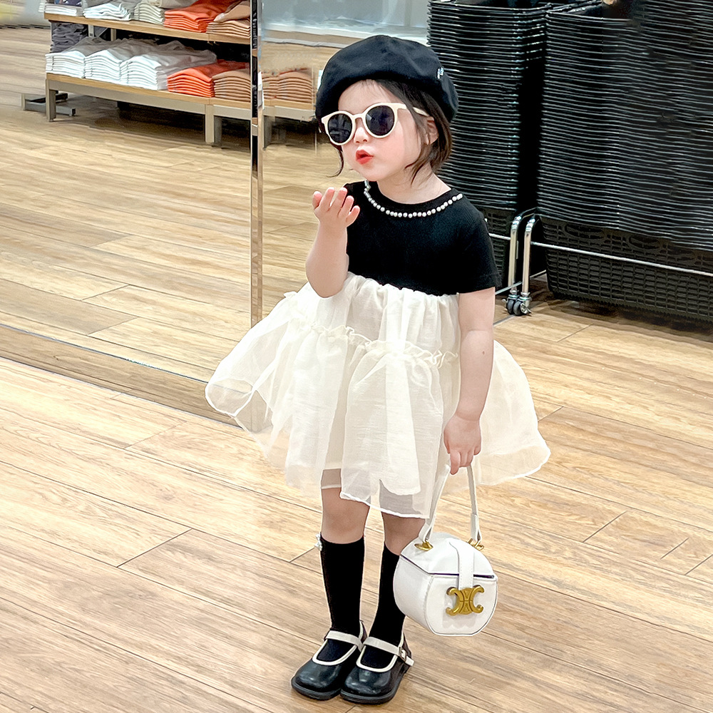 Miaoxuan 아동 의류 소녀 여름 의류 원피스 2023 새로운 어린이 치마 여름 반팔 바느질 소녀 공주 치마