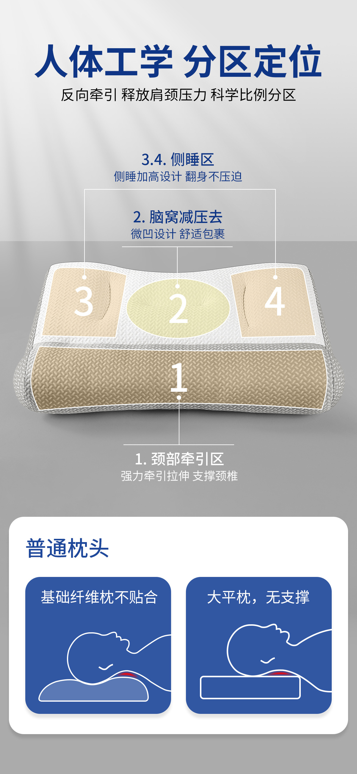 [2025 모델] 허브 조절 역추력 보조 분할 경추 베개 수면 베개 코어 가정용 난방 수면