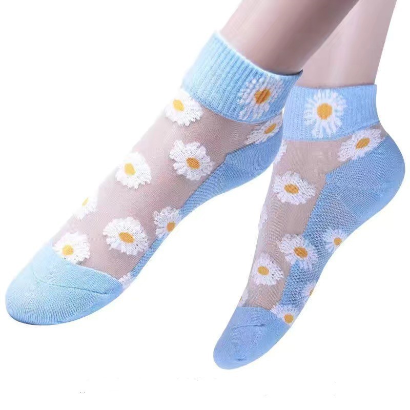 모든 매치 쇼트 배럴 데이지 아이스 실크 여름 양말 여성용 인터넷 연예인 같은 스타일 크리스탈 보트 양말 걸림 방지 실크 얇은 일본식스토어 가기