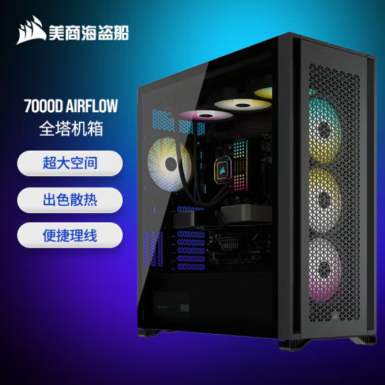 미국 해적선 7000D 기류 블랙 강화 유리 벌크 강화 풀 타워 ATX 주식에 적용스토어 가기