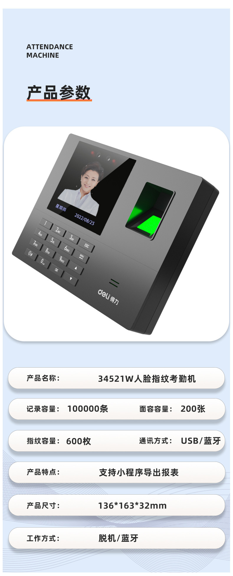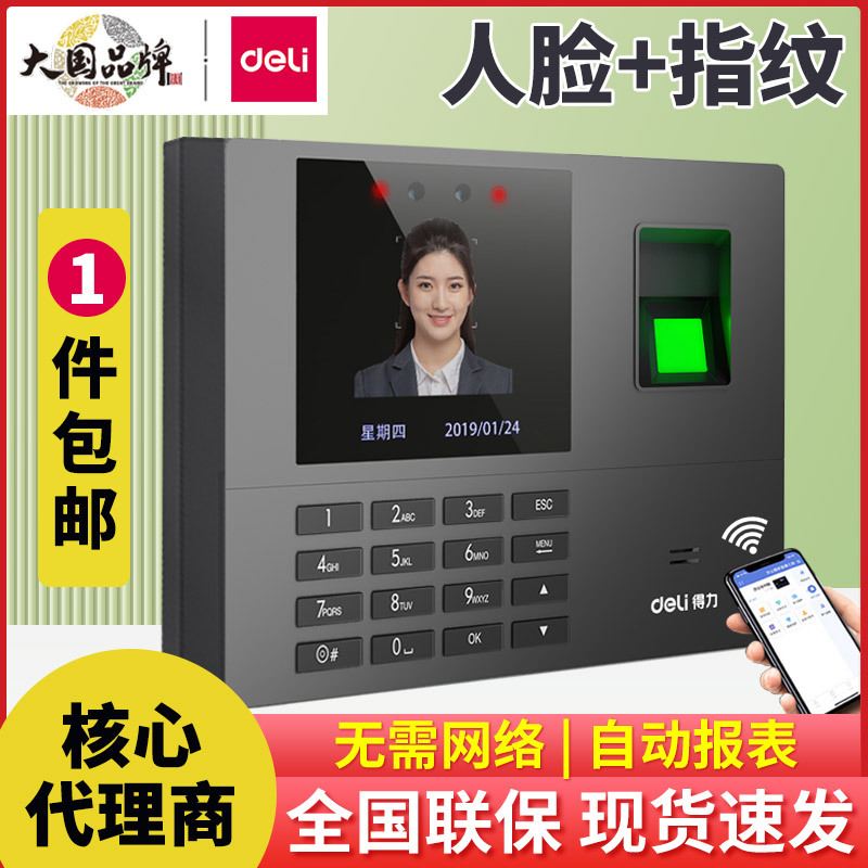 델리 34521W 출석 기계 지문 얼굴 인식 기업 직원 체크인 기계 지능형 카드 기계스토어 가기