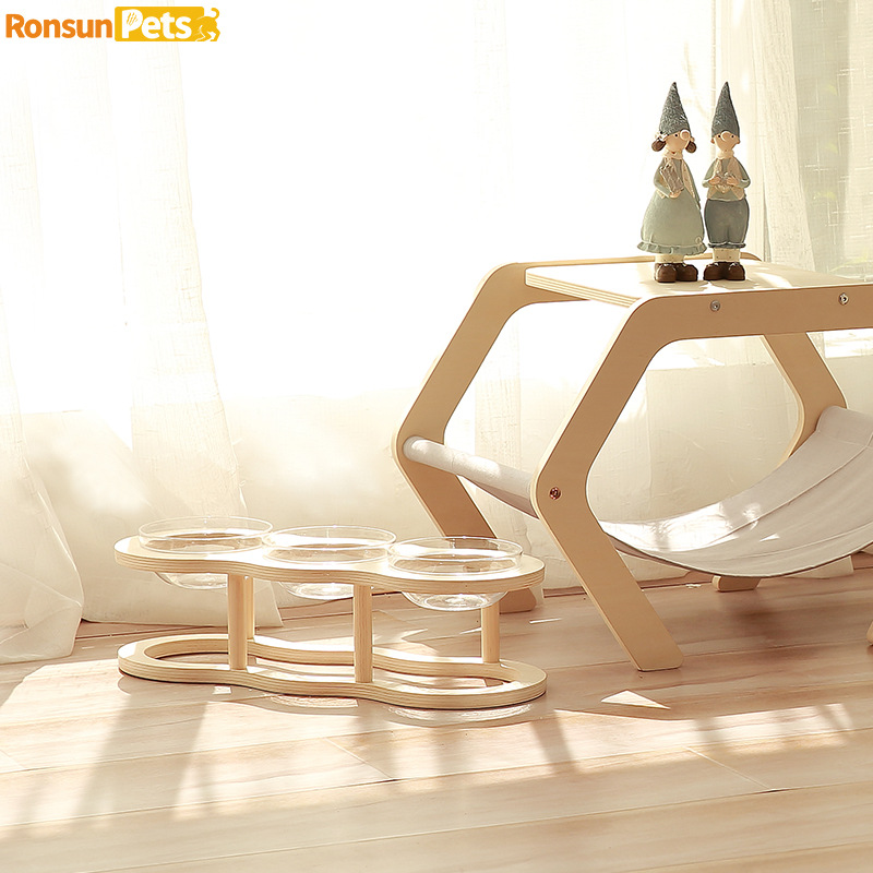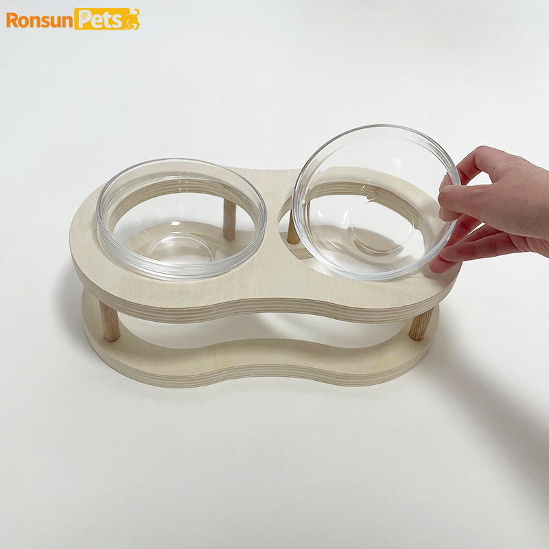 나무 애완 동물 그릇 랙 고양이를위한 멀티 그릇 다리가있는 쉬운 청소 고양이 그릇 홀더 ‌ 이중 그릇 애완 동물 식탁 ‌