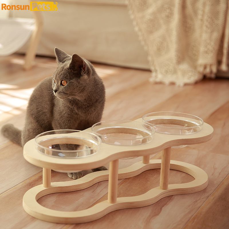 나무 애완 동물 그릇 랙 고양이를위한 멀티 그릇 다리가있는 쉬운 청소 고양이 그릇 홀더 ‌ 이중 그릇 애완 동물 식탁 ‌스토어 가기