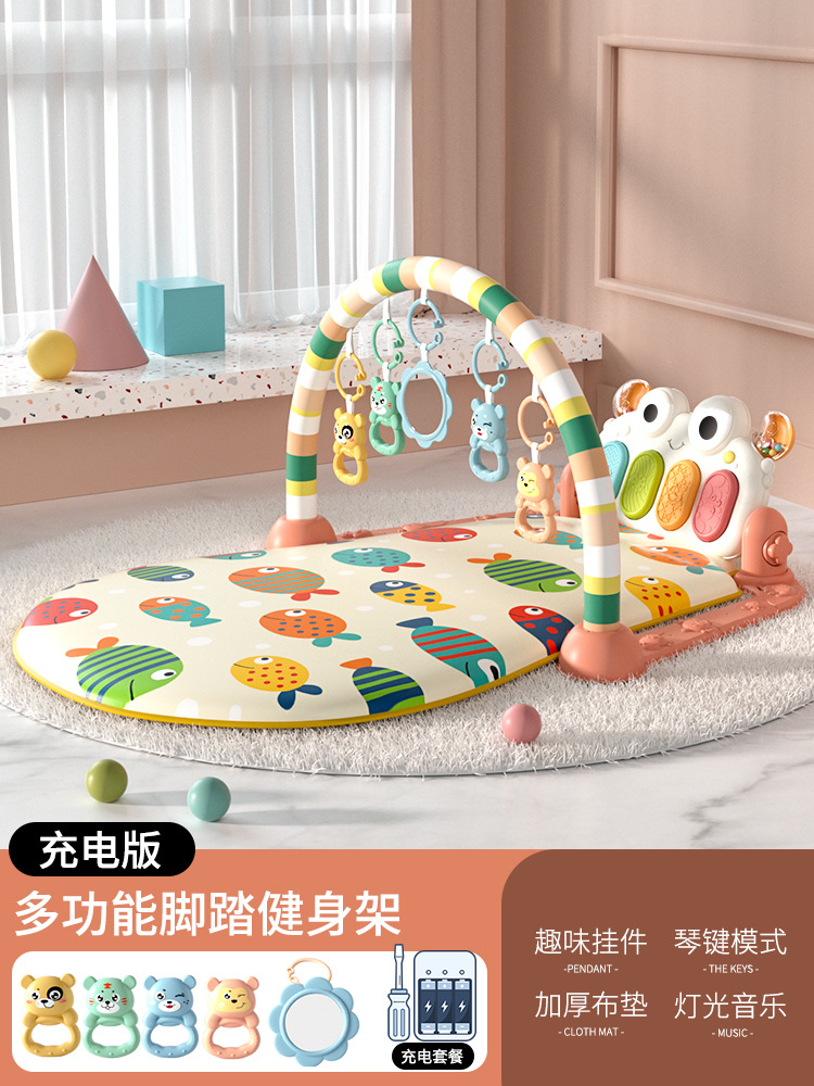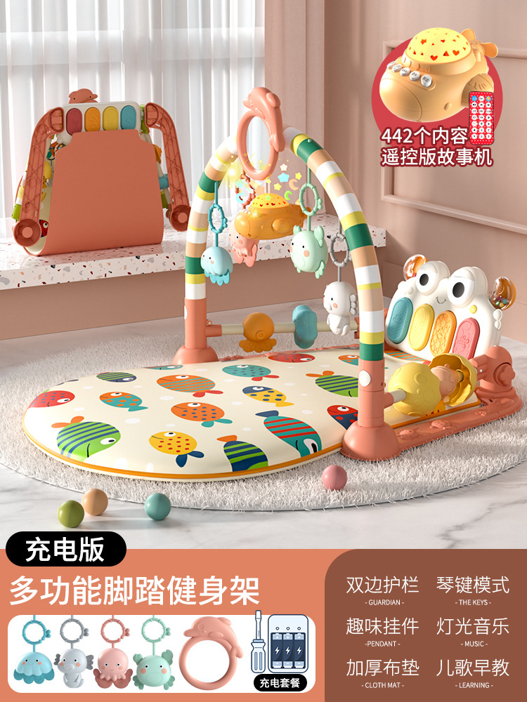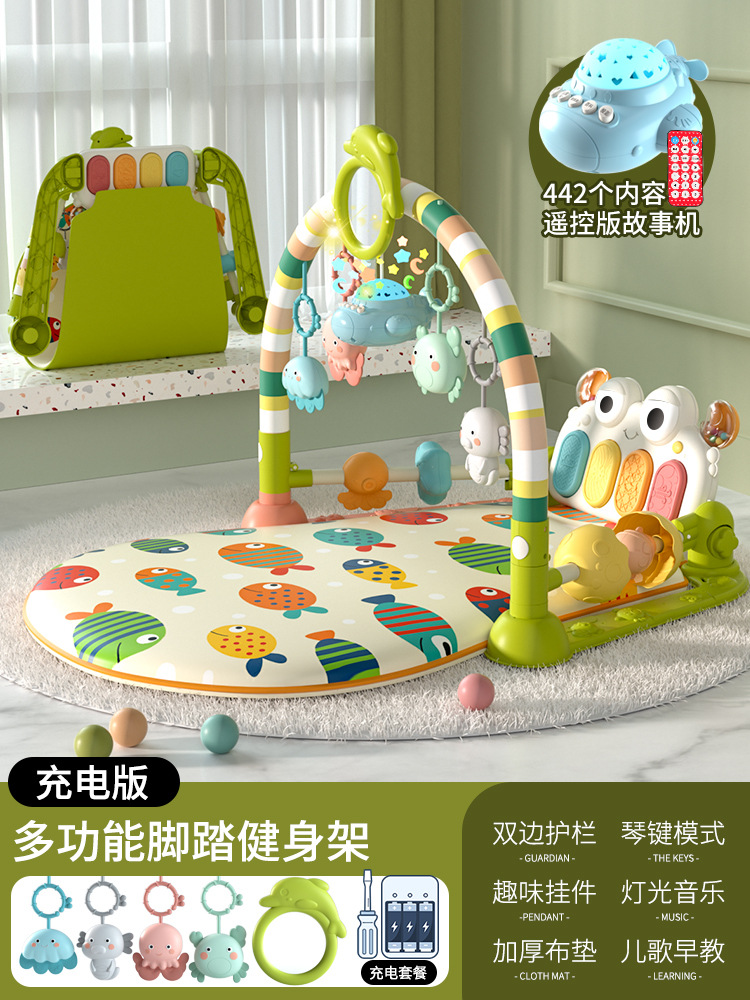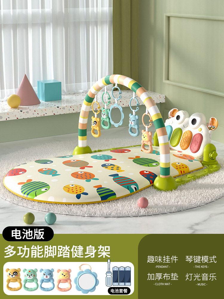 本款脚踏琴主图/选项图/详情图中挂件使用的是硬胶挂环挂起,使挂件面向买家,方便买家挑选,实际使用过程中,挂件需面向婴儿,因此采用绳子挂起挂件,请知悉!