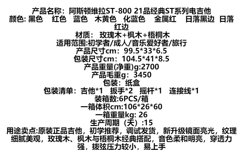 도매 일렉트릭 기타 21 ST 일렉트릭 기타 세트 학생 초보자 소개 뽑은 악기 록 기타