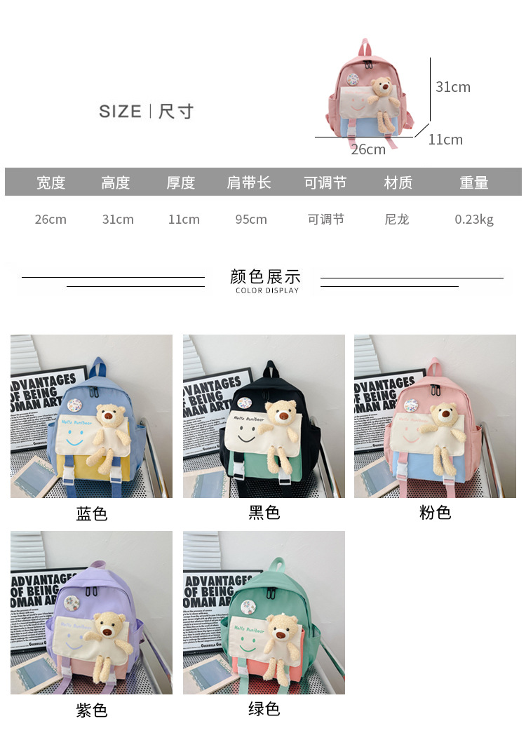 2023년 신형 한국판 어린이용 작은 배낭, 트렌디한 곰돌이 디자인, 유아용 책가방, 부담 경감 디자인스토어 가기