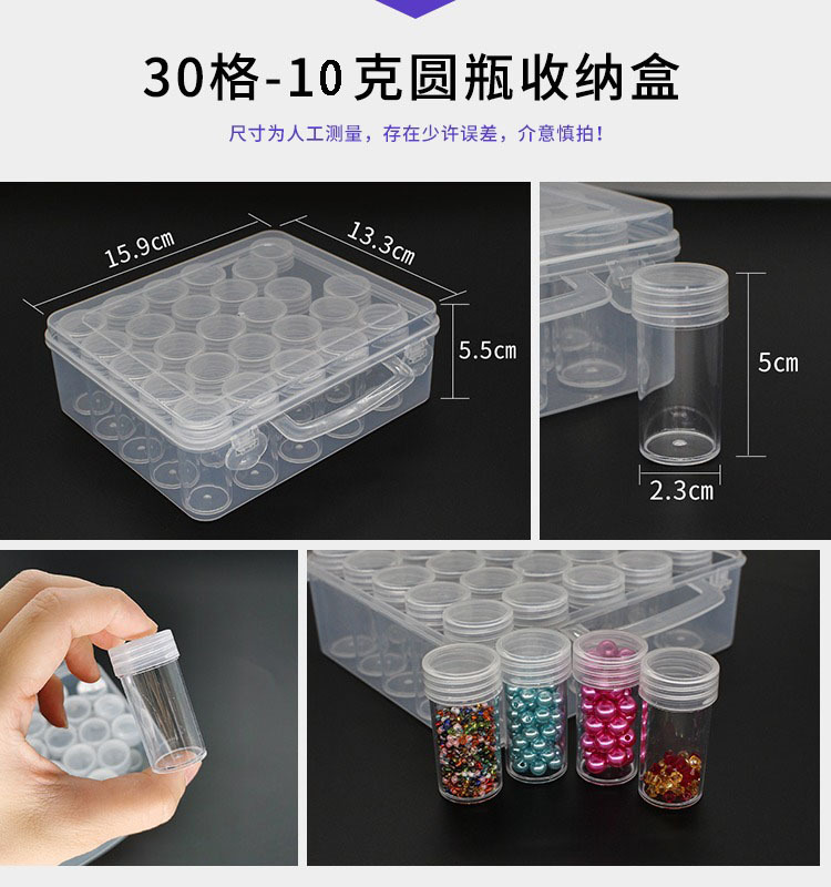 30 그리드 라운드 병 보관함 새로운 스타일 쌀 구슬 네일 아트 다이아몬드 장식품 별도의 병에 담긴 그리드 다이아몬드 페인팅 보관 독립 병스토어 가기