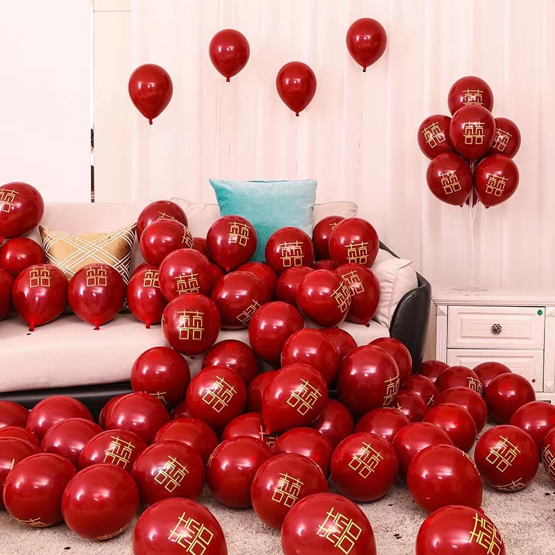 웨딩 풍선 10 인치 라운드 라텍스 풍선 웨딩 룸 레이아웃 빨간 석류 행복한 단어 풍선 장면 장식 풍선스토어 가기