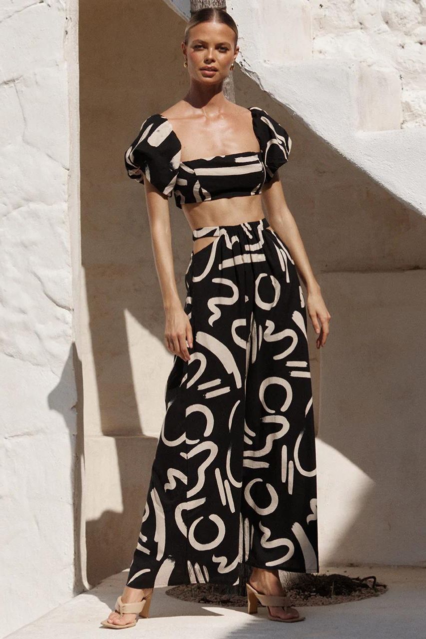 대외 무역 여자의 독립 역 유럽과 미국 여름 새로운 버블 슬리브 탑 중공 대형 스윙 스커트 스플릿 스커트 세트스토어 가기