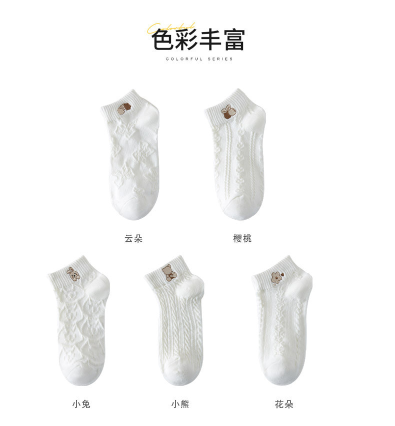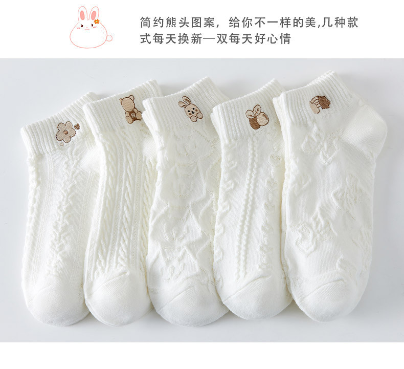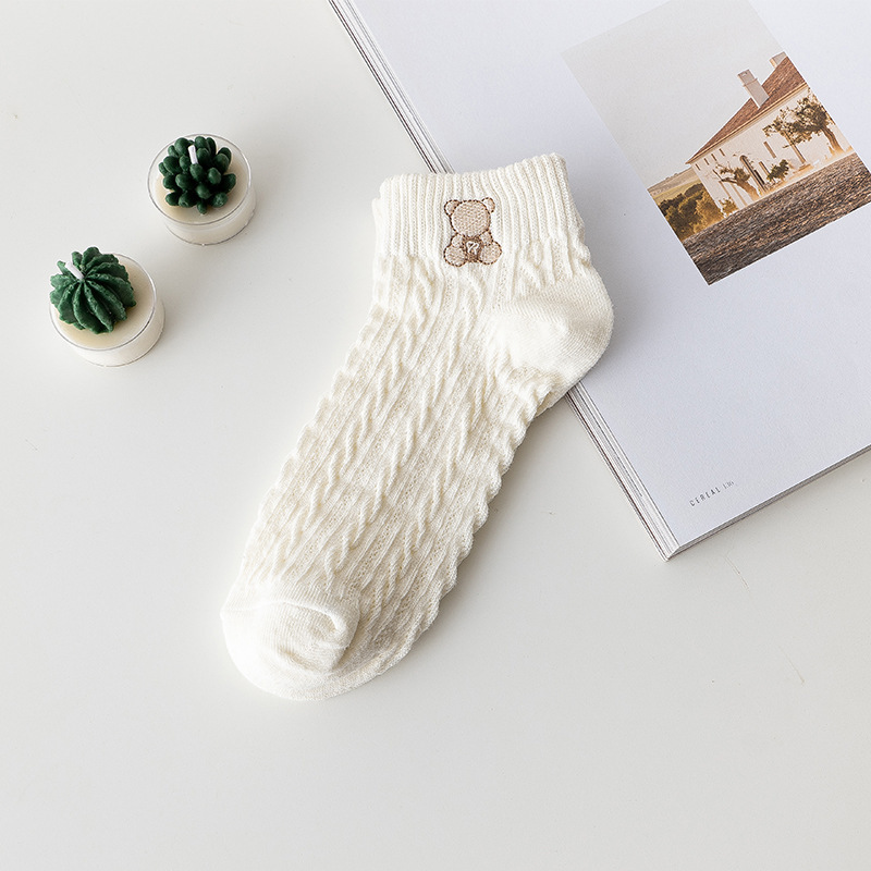 봄과 여름 흰색 양말 여성용 짧은 양말 얇은 한국식 입체 만화 곰 로우 탑 짧은 튜브 스포츠 캐주얼 여성 양말