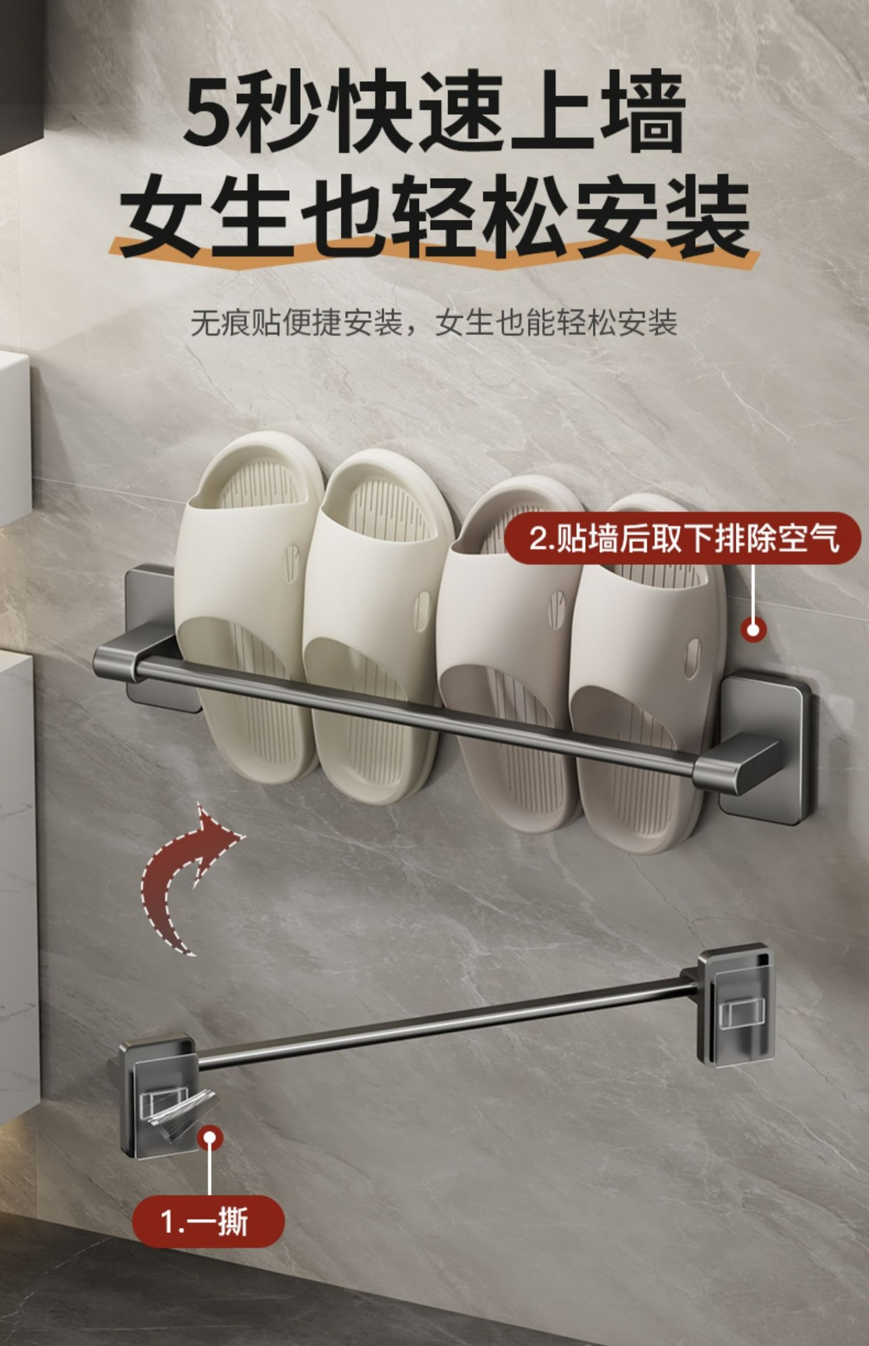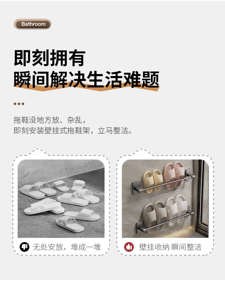 욕실 슬리퍼 랙 펀치 프리 화장실 수납 랙 신발 보관 유물 화장실 벽걸이 랙 배수 랙
