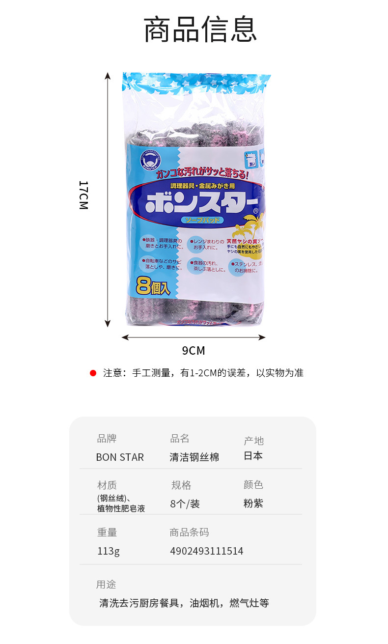 BONSTAR 일본 청소 스틸 울 브러쉬 냄비 스틸 울 스틸 볼을자를 수 있습니다 가정용 주방 세척 스틸 울 8 팩