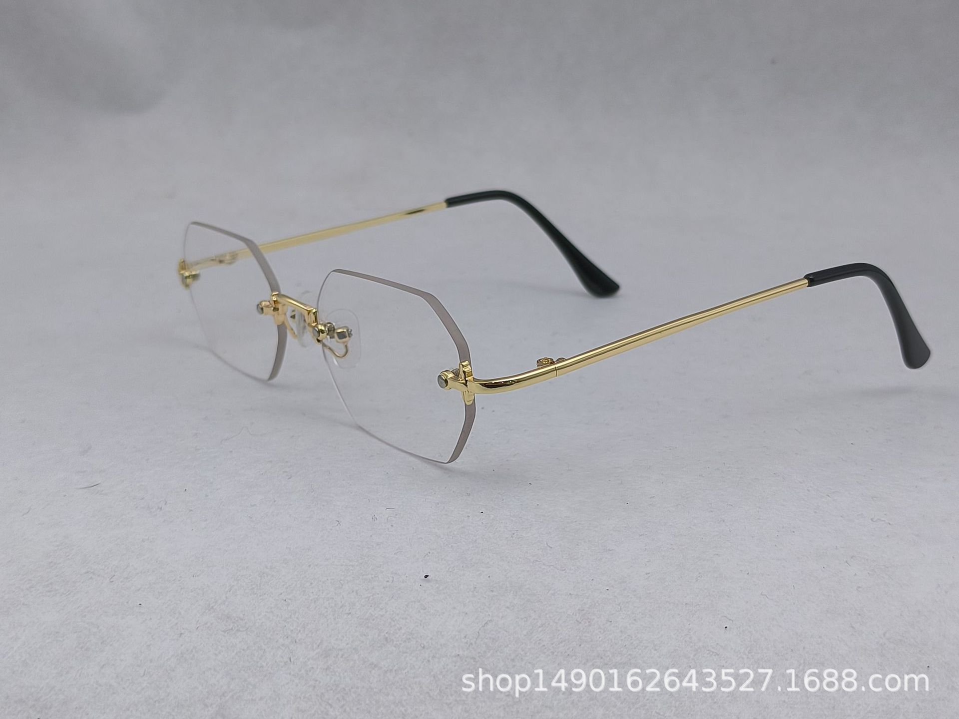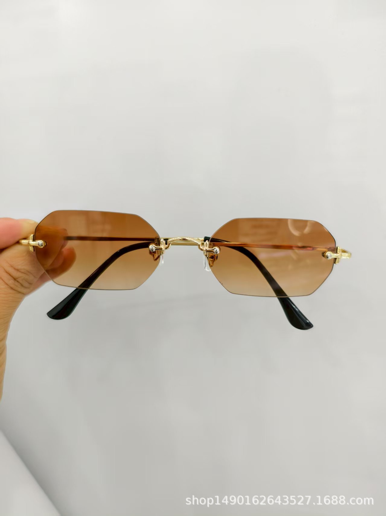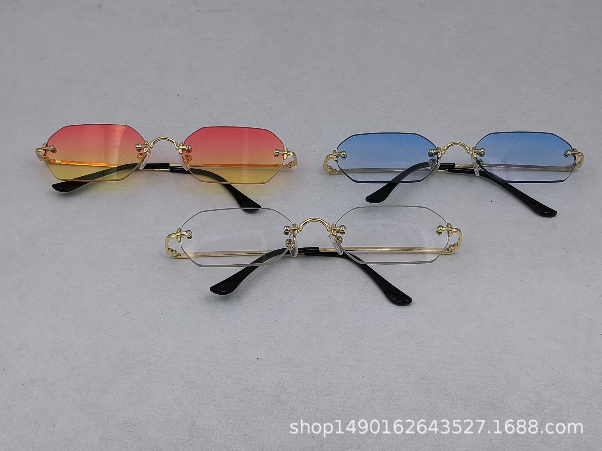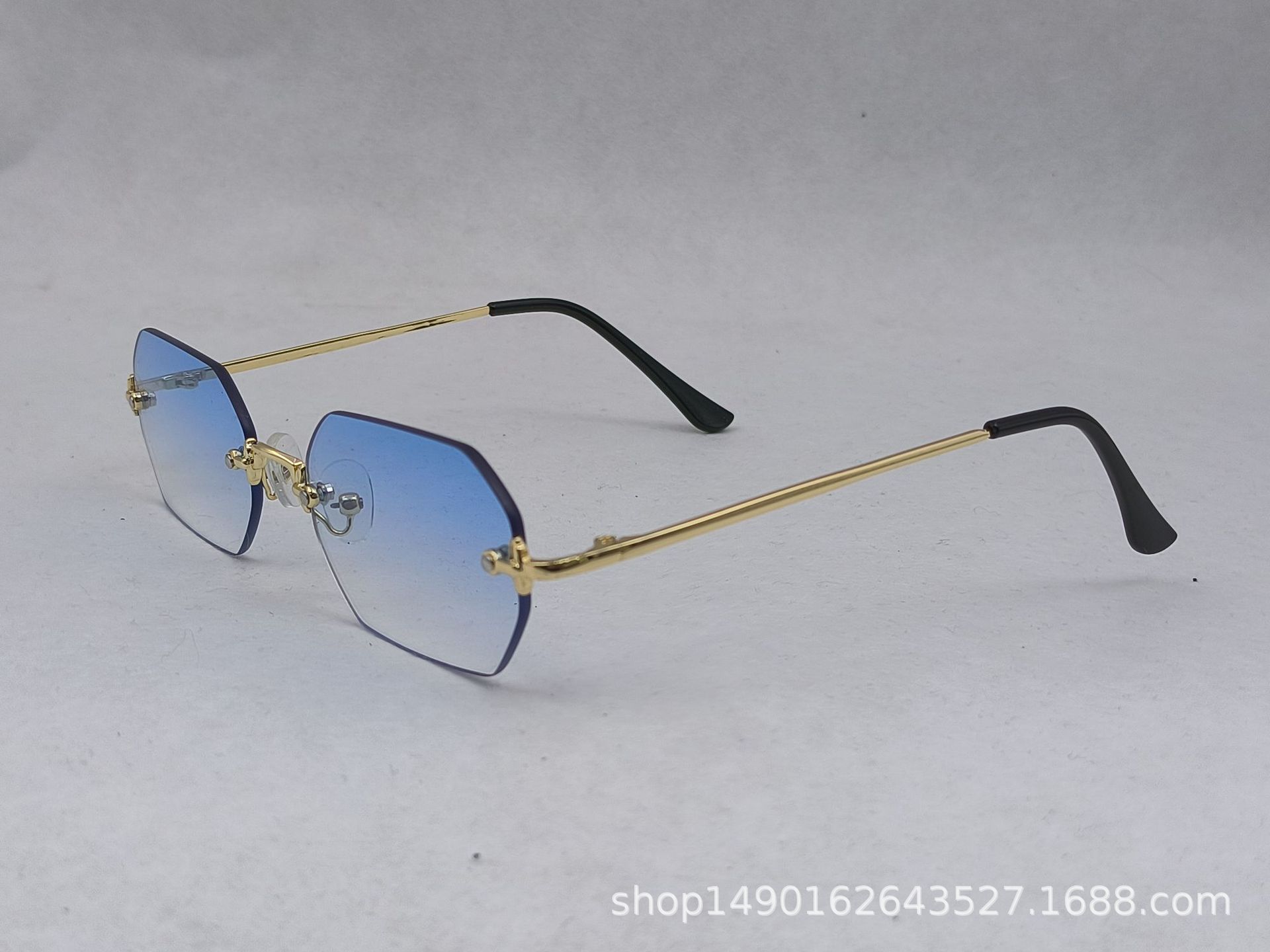 2023 새로운 유럽과 미국 패션 무테 선글라스, 인터내셔널 스테이션의 인기 다각형 컷팅 안경 패션 83510