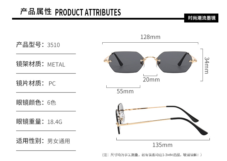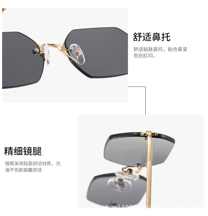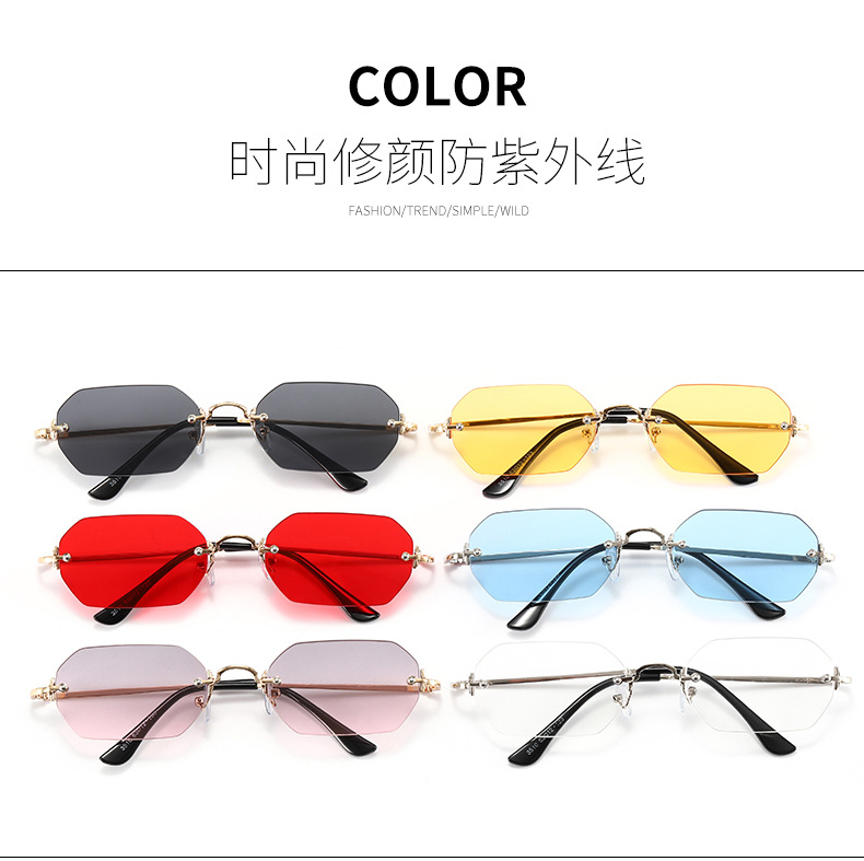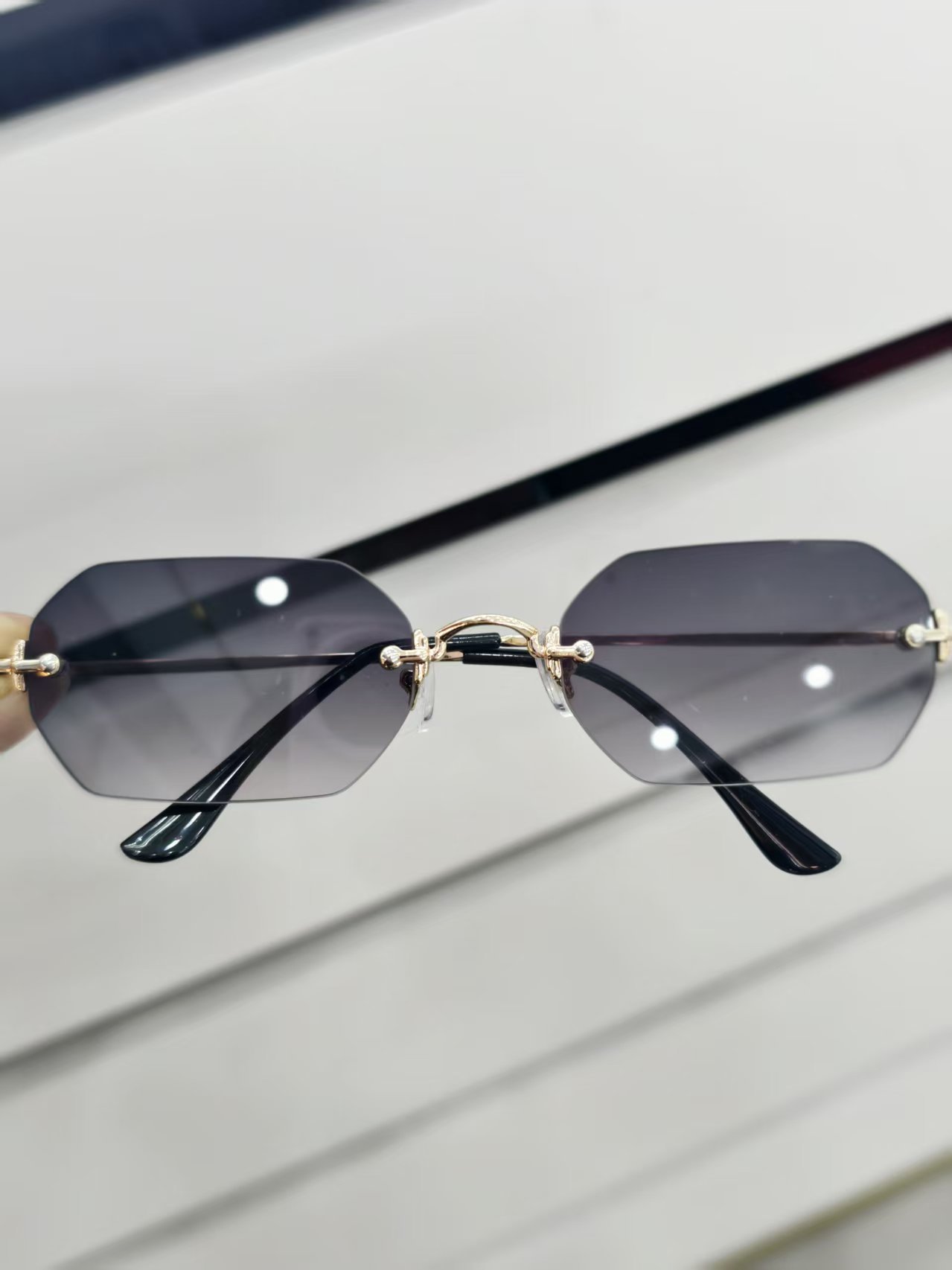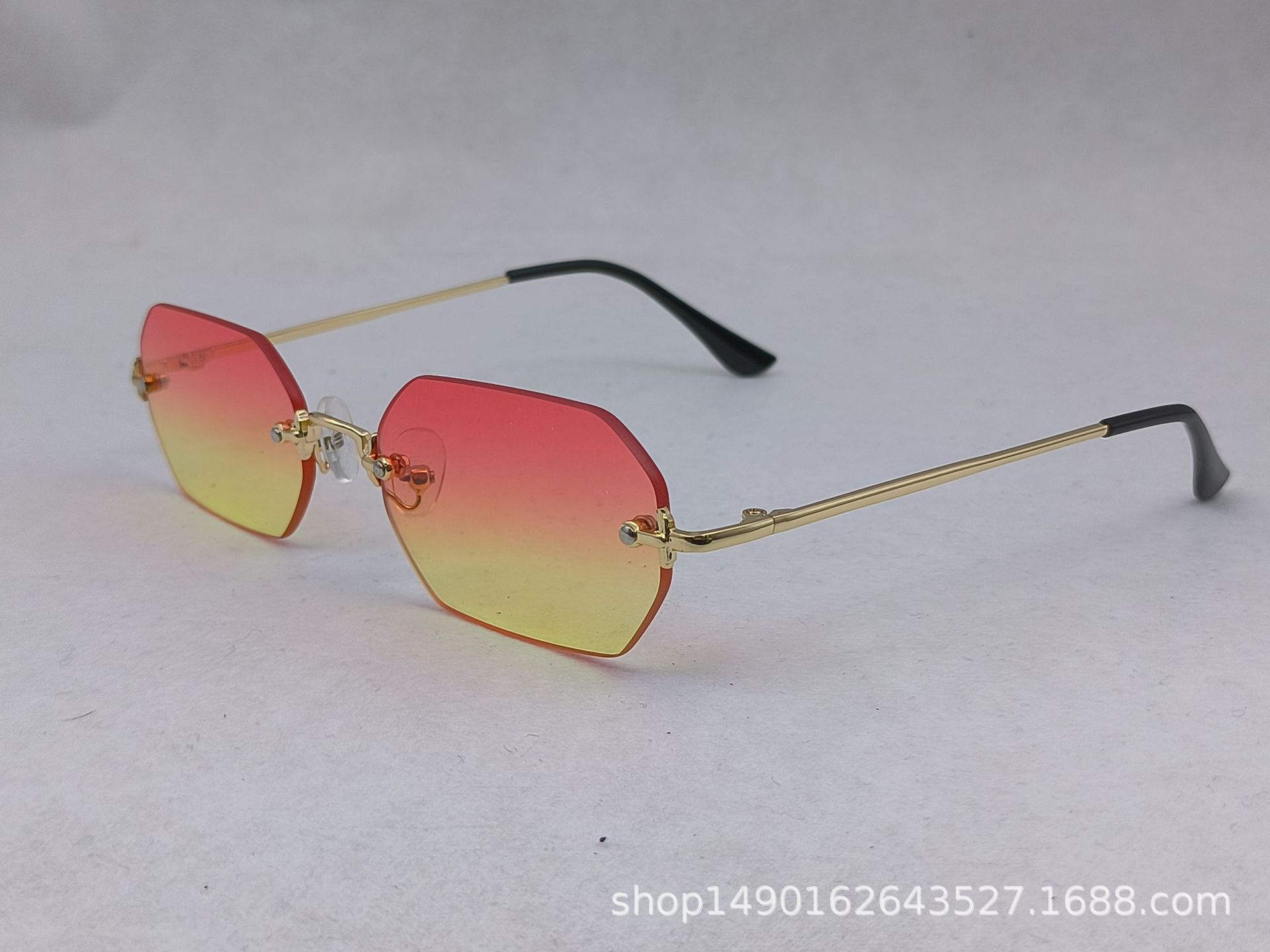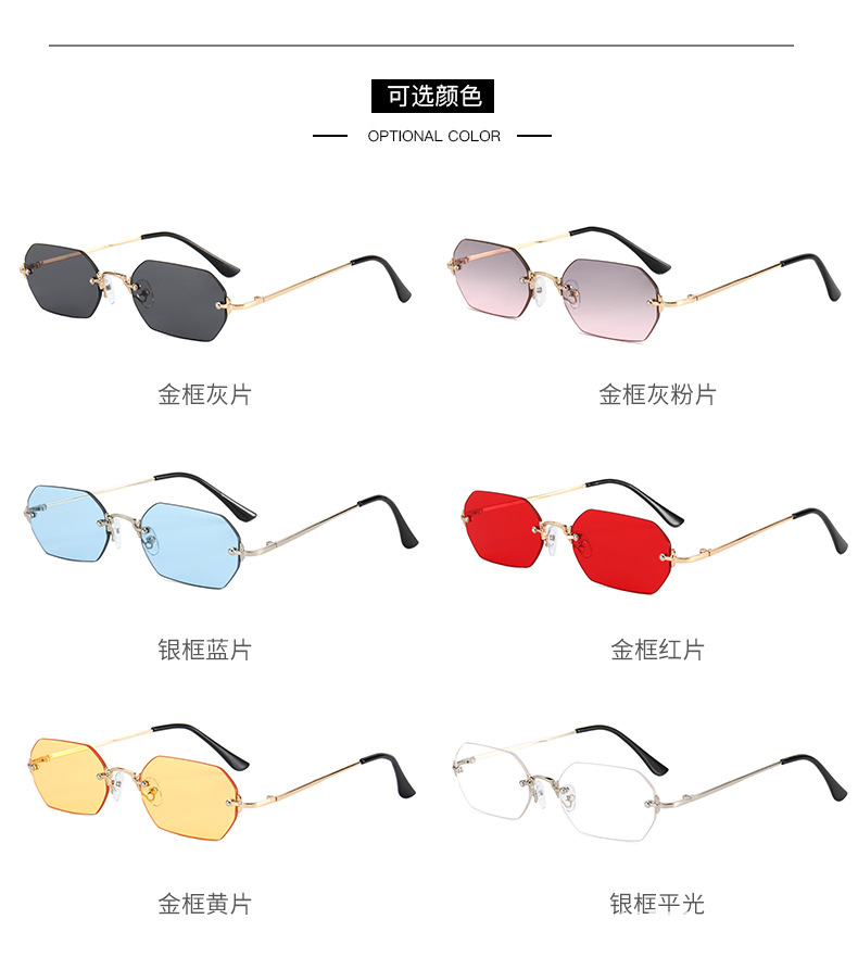 2023 새로운 유럽과 미국 패션 무테 선글라스, 인터내셔널 스테이션의 인기 다각형 컷팅 안경 패션 83510