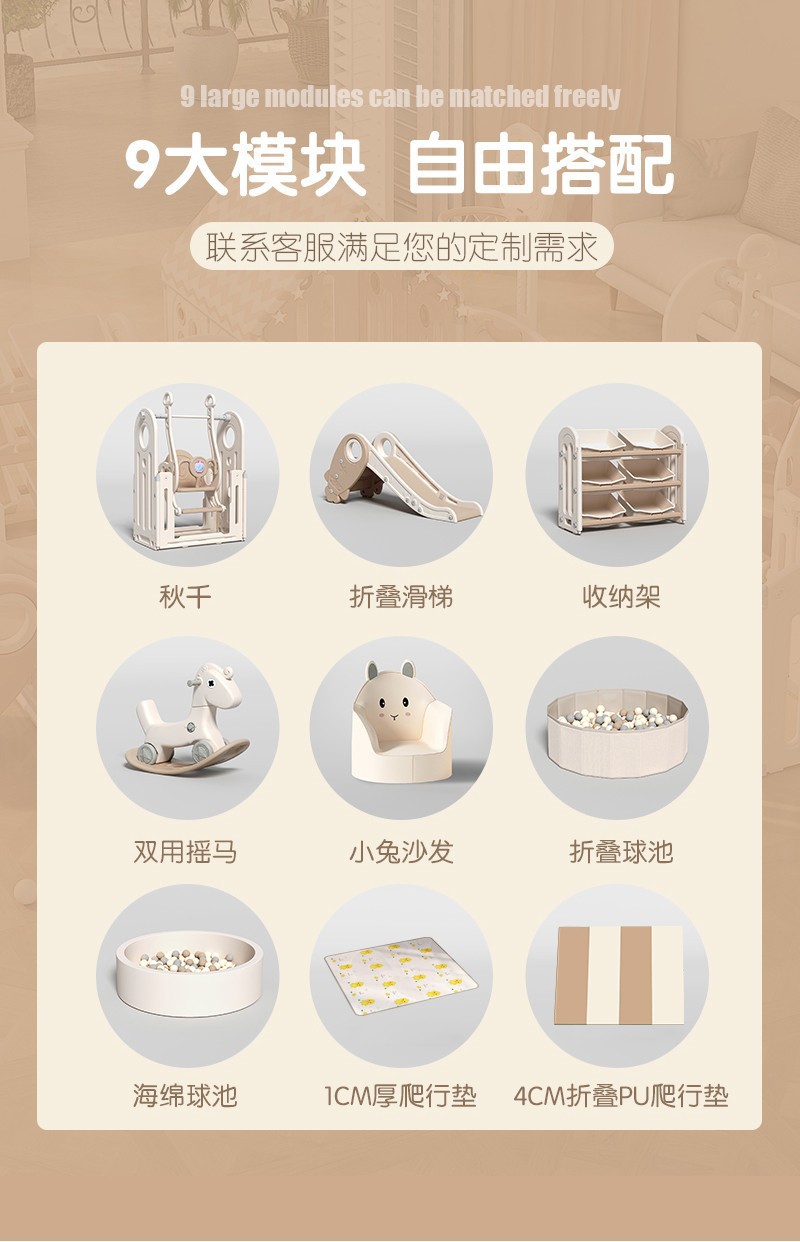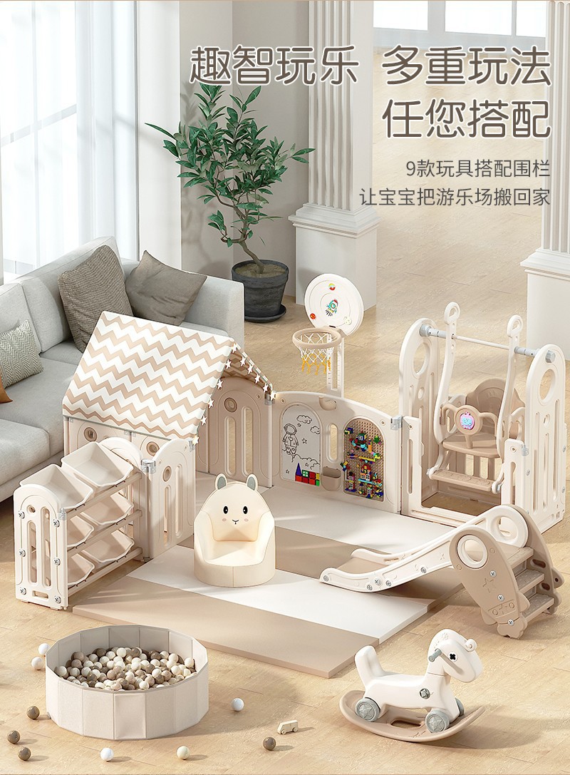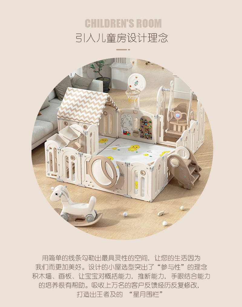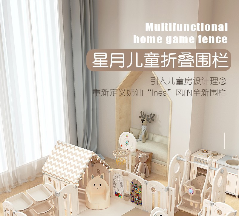 스타-문 조합 게임 울타리 가정용 접이식 놀이 공원 아기 통합 보호 울타리 스윙 매칭 라이트 베이지스토어 가기