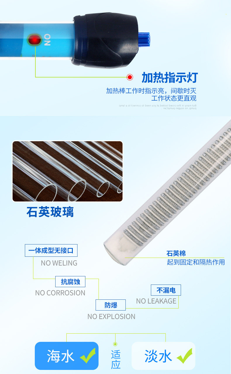 송바오 어항 석영 유리 가열 막대 HS50W/500W 자동 일정 온도 폭발 방지 가열 막대 어항 히터