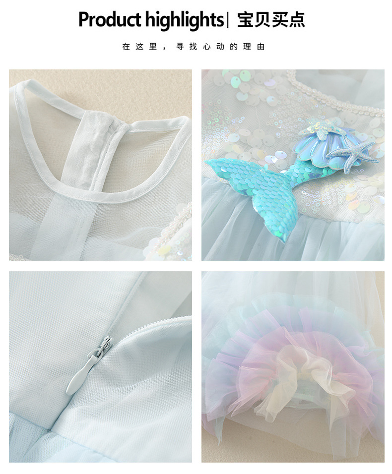 소녀 인어 공주 원피스 여름 2025 새로운 소녀 세련된 유행 폰테 원피스 여름 어린이 원피스스토어 가기