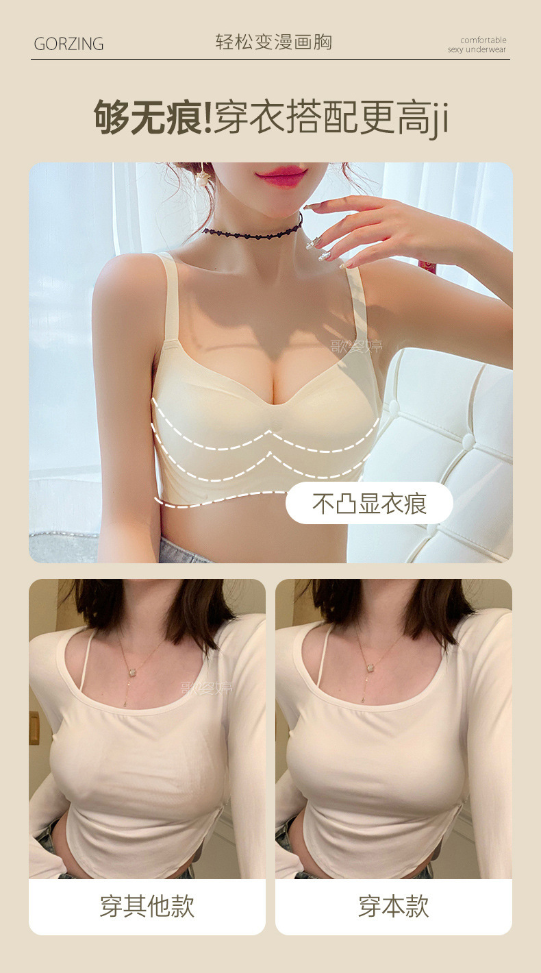 만화 같은 가슴 모양을 만들어주는 여성용 브라, 푹신한 컵, 부드러운 지지력, 가슴을 더 크게 보이게 하는 브라, 여성용 무봉제 여름용 통기성 브라스토어 가기