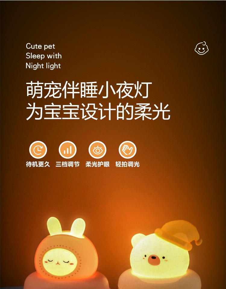 귀여운 애완 동물 수면 야간 조명 USB 충전 데스크탑 팻 터치 센서 라이트 침실 모닝업 침대 옆 조명 공급 소형