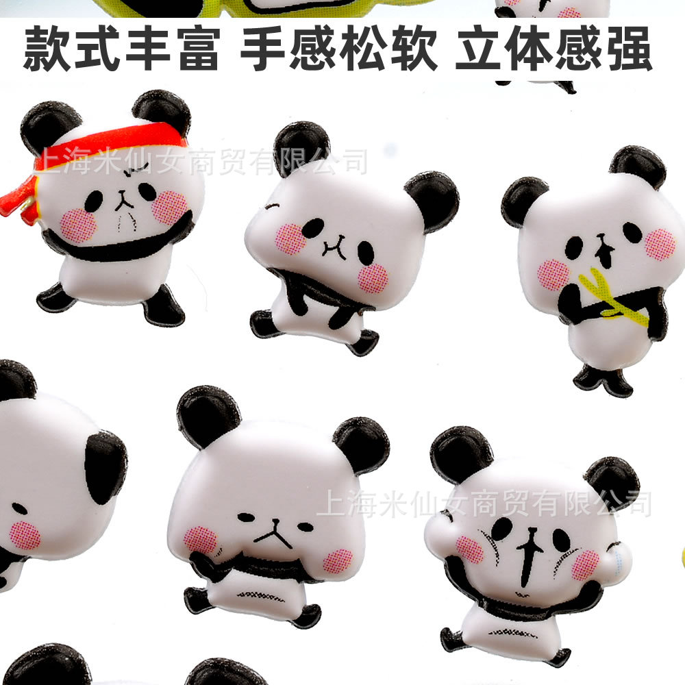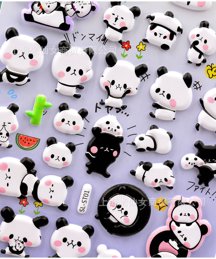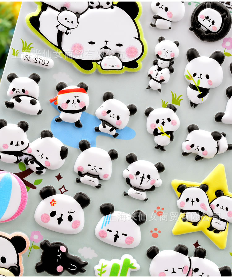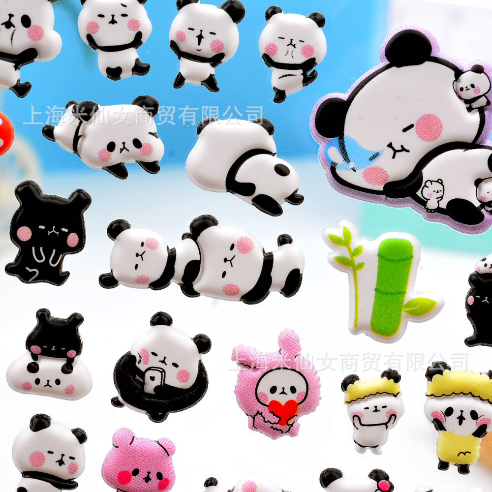 Shinkle 팬더 스티커 귀여운 표현 가방 스티커 어린이 입체 버블 스티커 아기 유치원 작은 스티커