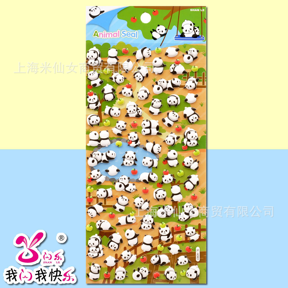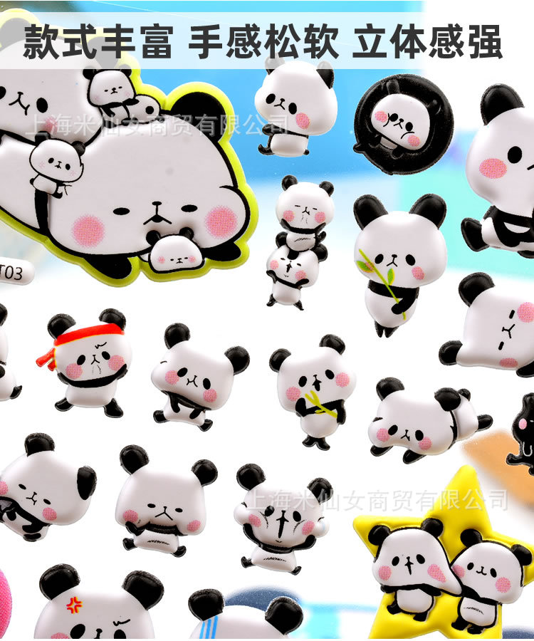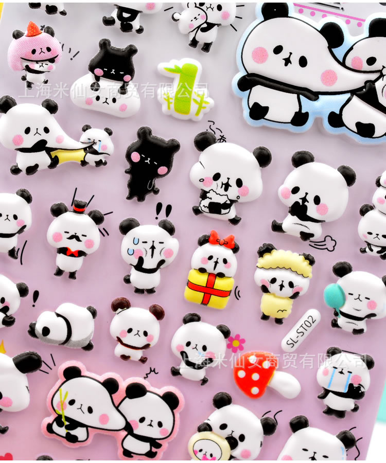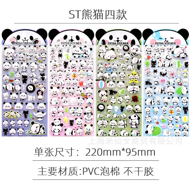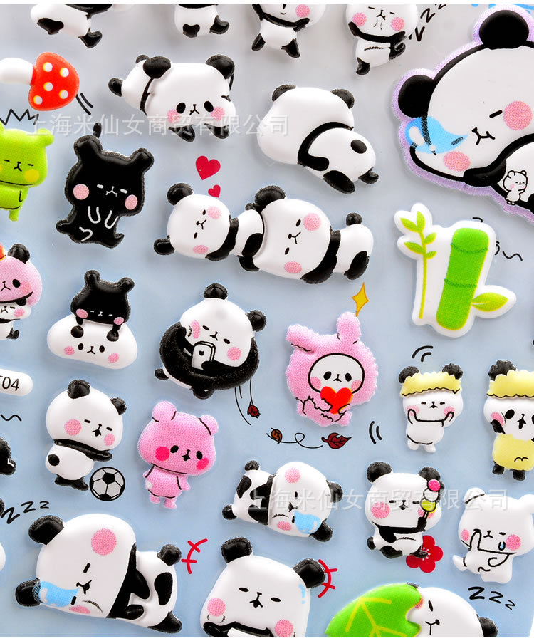 Shinkle 팬더 스티커 귀여운 표현 가방 스티커 어린이 입체 버블 스티커 아기 유치원 작은 스티커