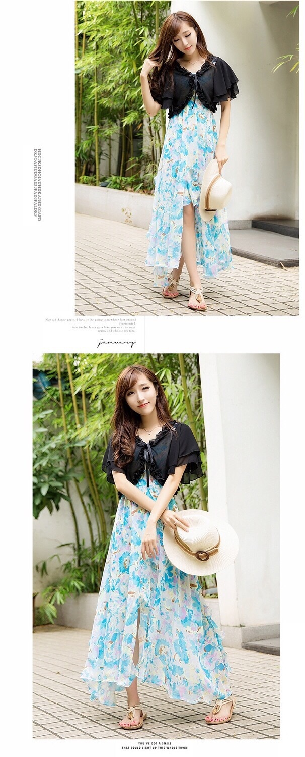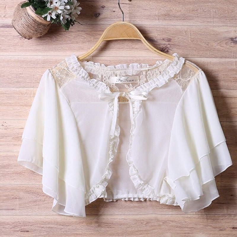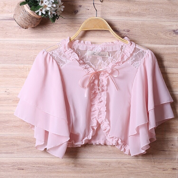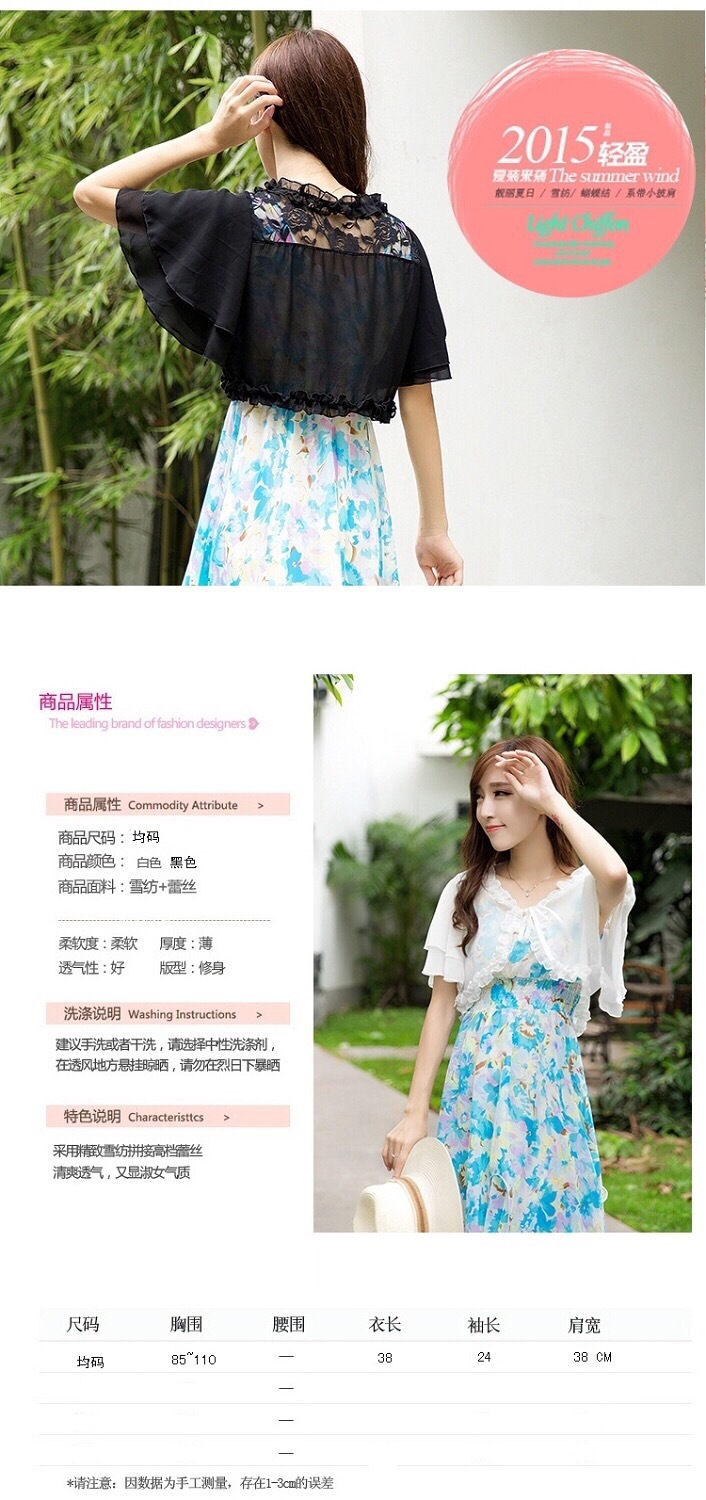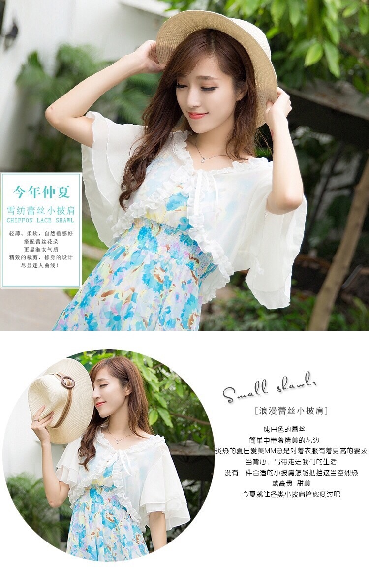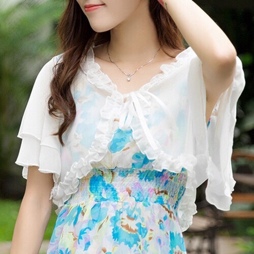 雪纺小披肩女薄外套夏季新款韩版大码百搭坎肩短袖短款开衫防晒衣