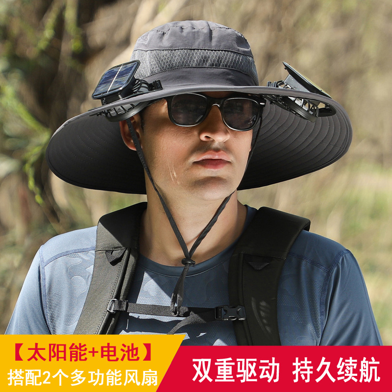 긴 배터리 수명 큰 바람 리튬 배터리 충전식 태양 팬 모자 남자 야외 태양 모자 등산 어부 모자 얇은