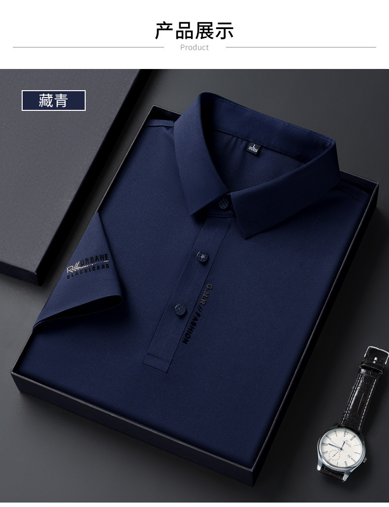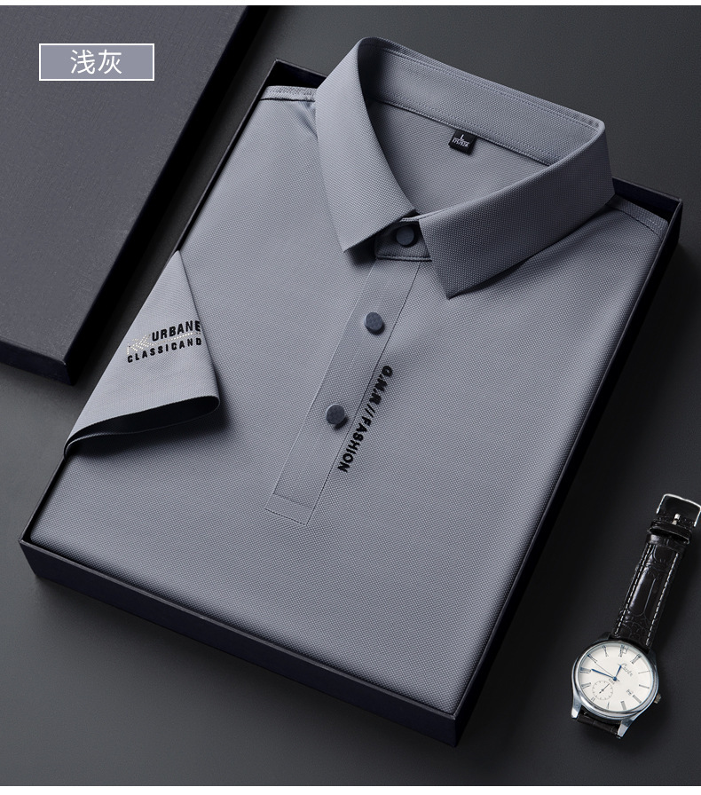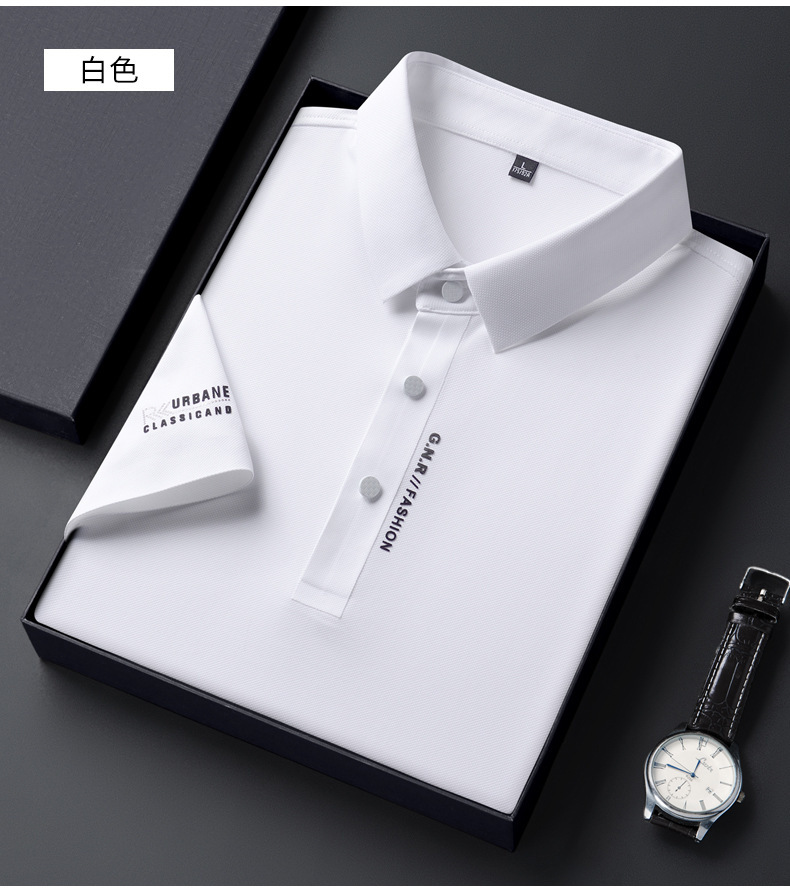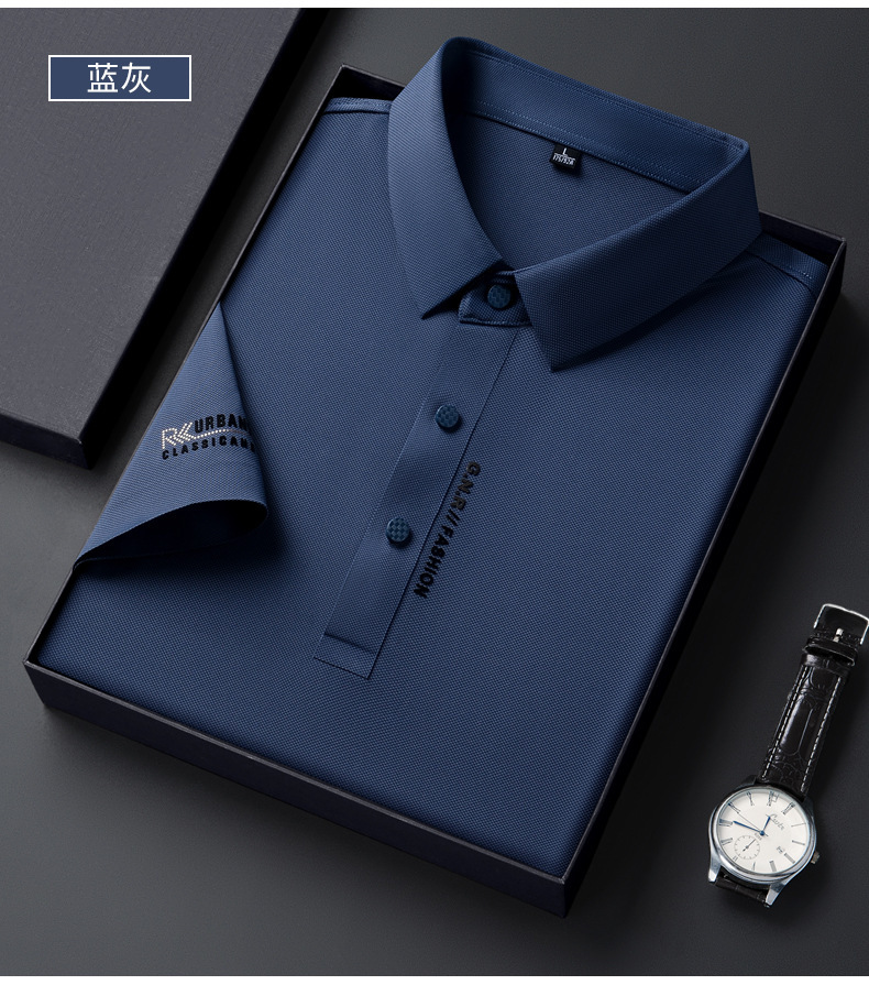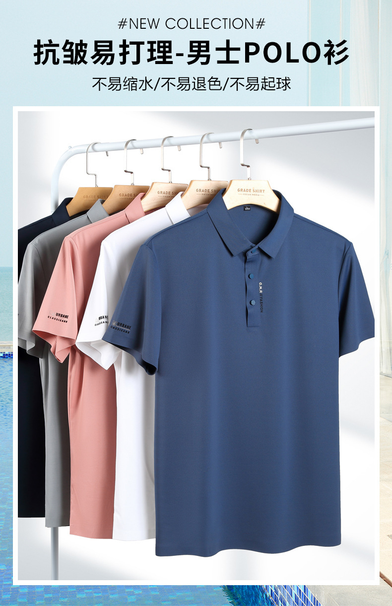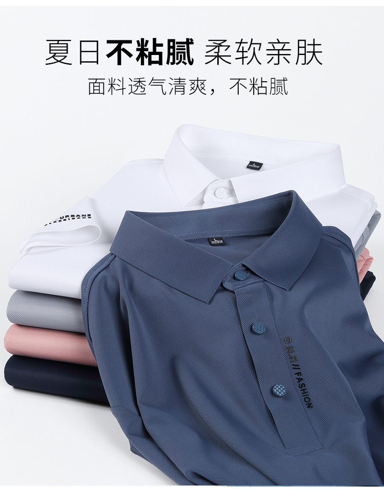 2023 신상품 아이스 실크 비 마킹 폴로 셔츠 남성 여름 비즈니스 캐주얼 스트레치 비 다림질 반팔 라젤 티셔츠