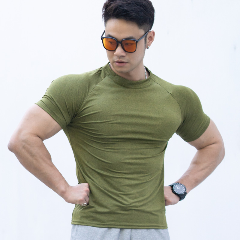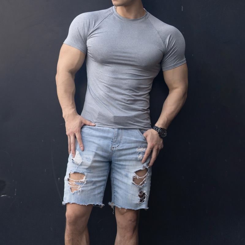 여름 트렌디 브랜드 피트니스 티셔츠 남성용 고탄성 속건 타이트 탑 근육 트레이닝 의류 통기성 스포츠 반팔 남성스토어 가기