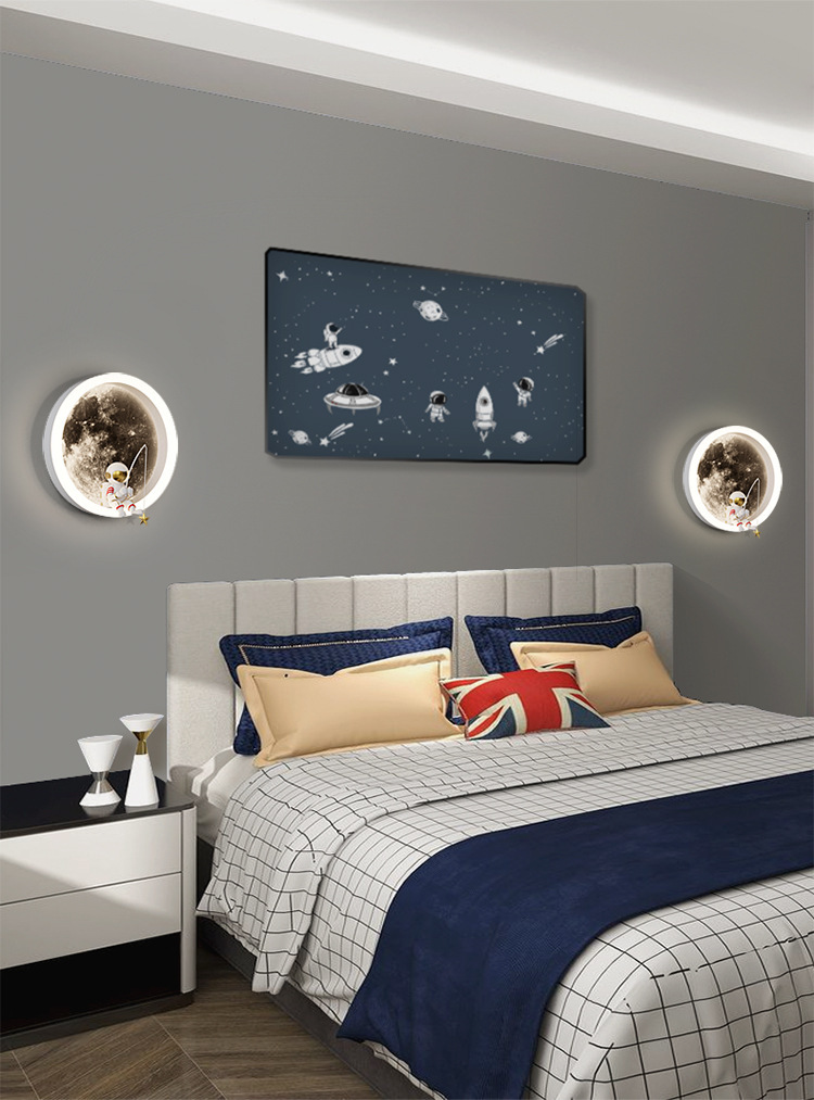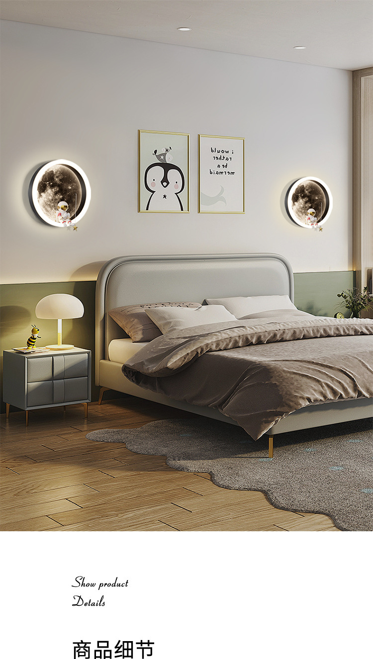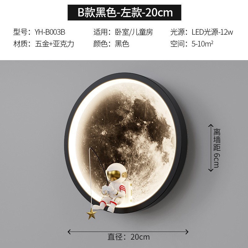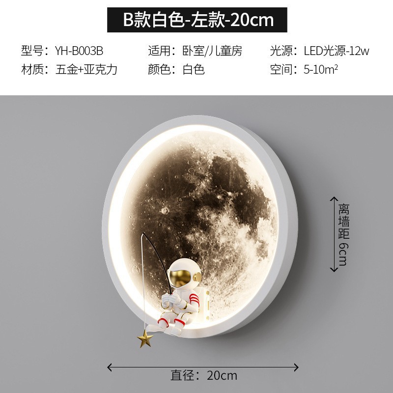 아마존 네트 붉은 달 벽 램프 미니멀리스트 분위기 우주 비행사 침실 침대 옆 램프 창조적 인 성격 어린이 방 벽 램프