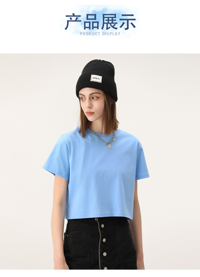 여성용 하프 길이 배꼽 노출 순수 코튼 티셔츠 여름 편안한 통기성 빗질 코튼 반팔 솔리드 컬러 화이트 티셔츠 여성용스토어 가기