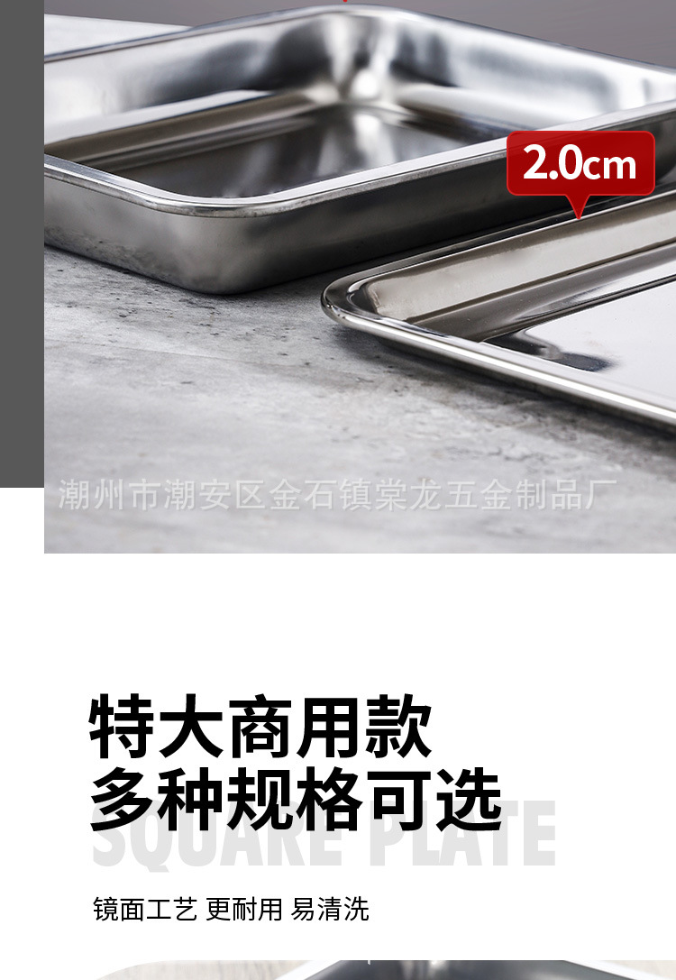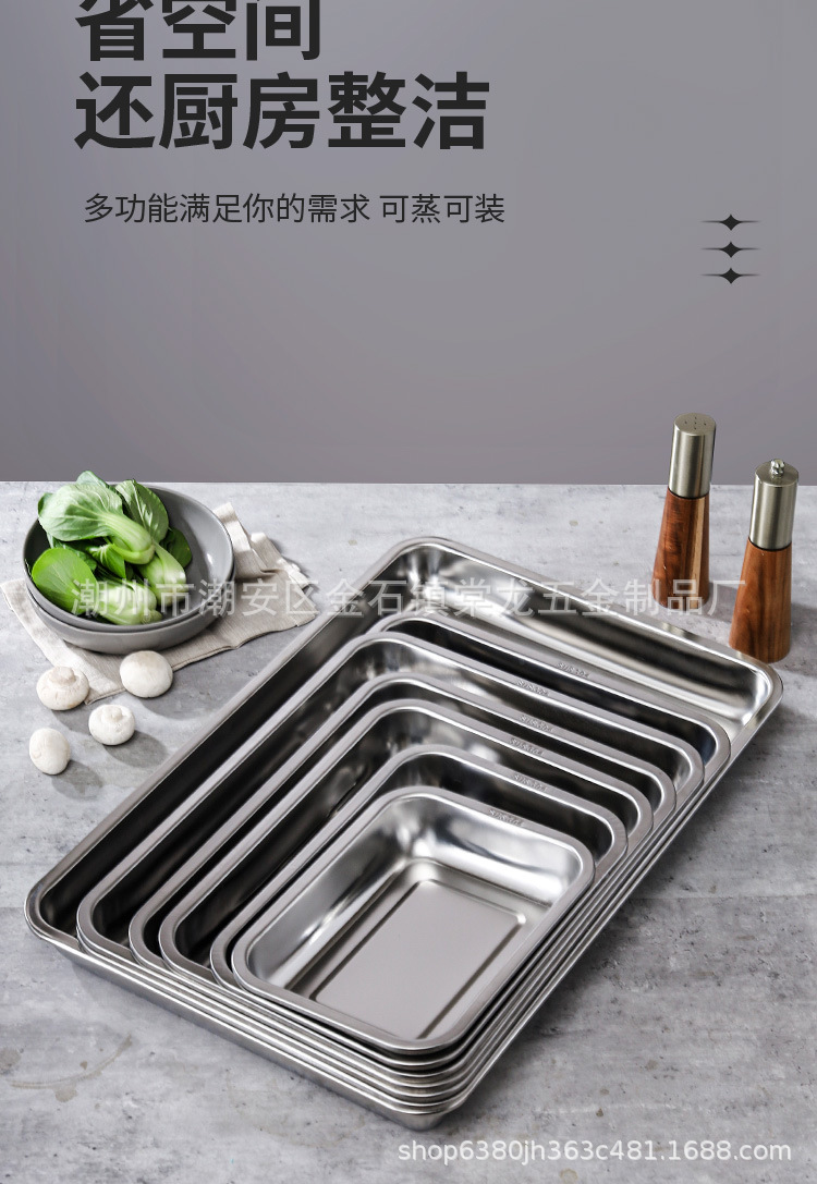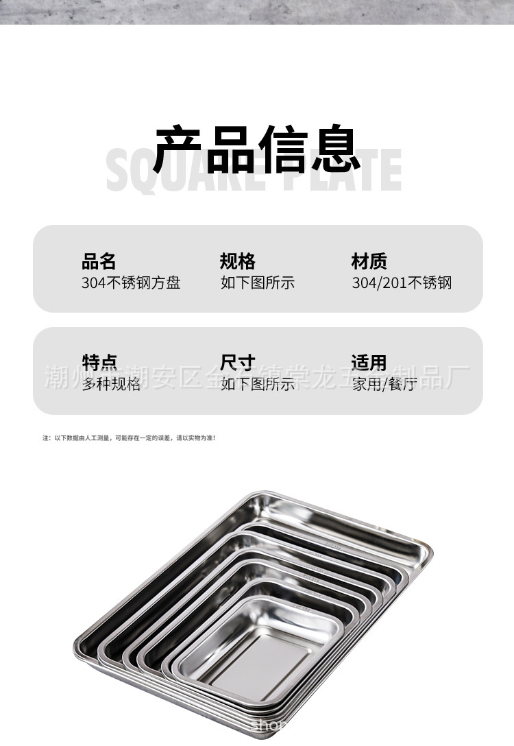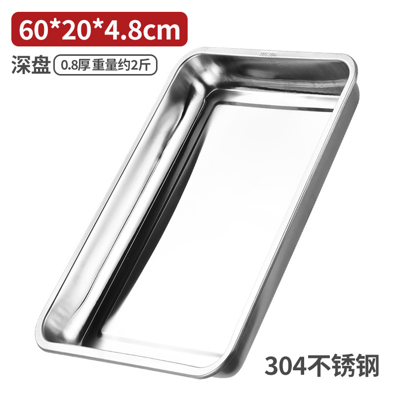 304 스테인레스 사각 접시 60*40*4.8 찐 밥 접시 직사각형 두꺼운 트레이 바베큐 트레이 티트레이 펀칭 도매스토어 가기