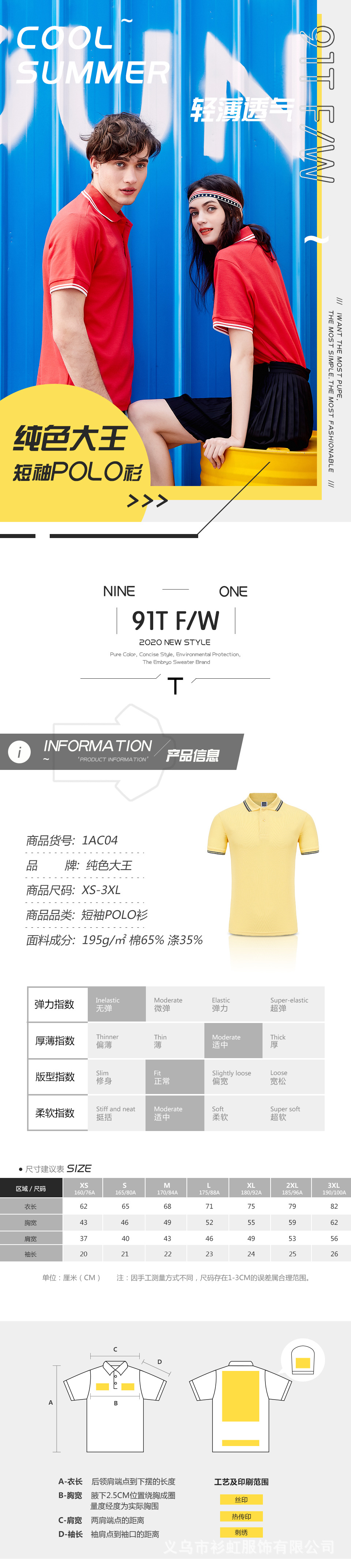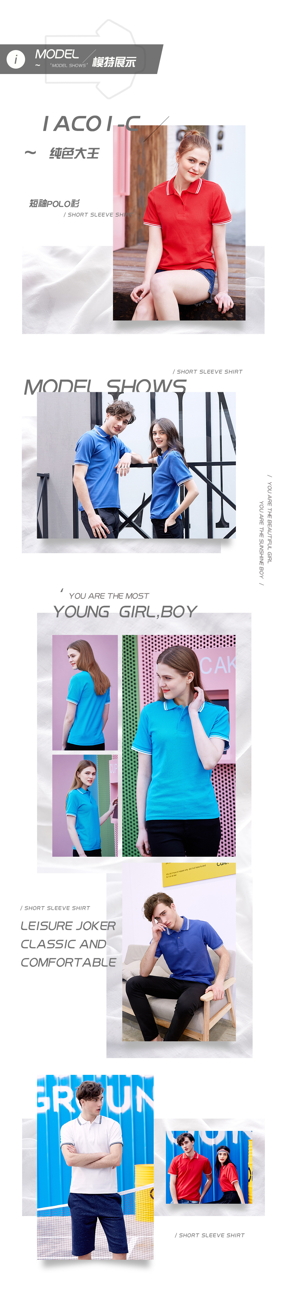 단색 킹 1AC04 원사 염색 칼라 CVC 반팔 옷깃 폴로 셔츠 대비 컬러 칼라 작업복 광고 셔츠 로고