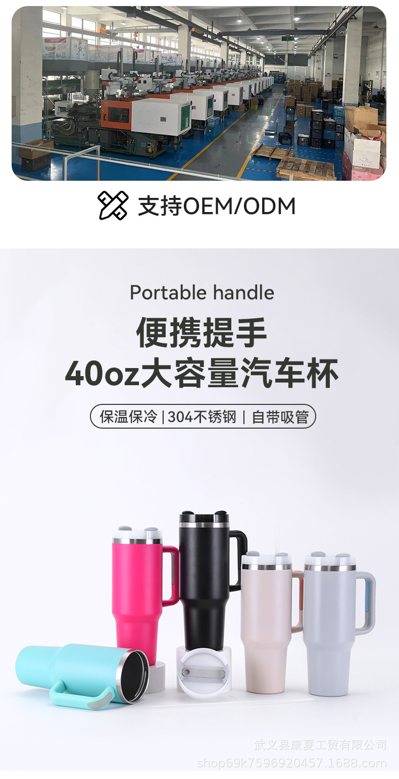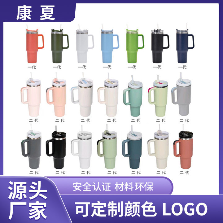 크로스보더 2 세대 40 온스 스테인리스 스틸 아이스 컵 빨대 휴대용 자동차 컵 대용량 단열 콜드 컵스토어 가기