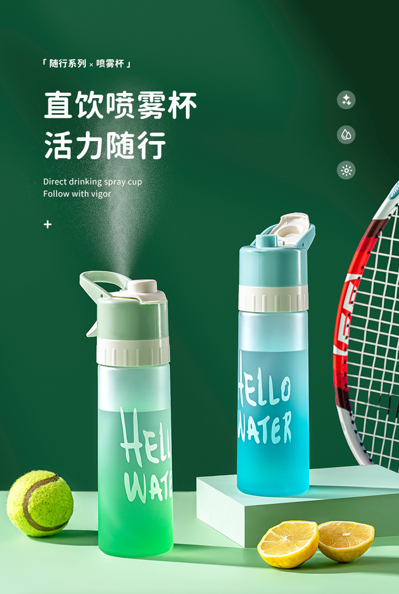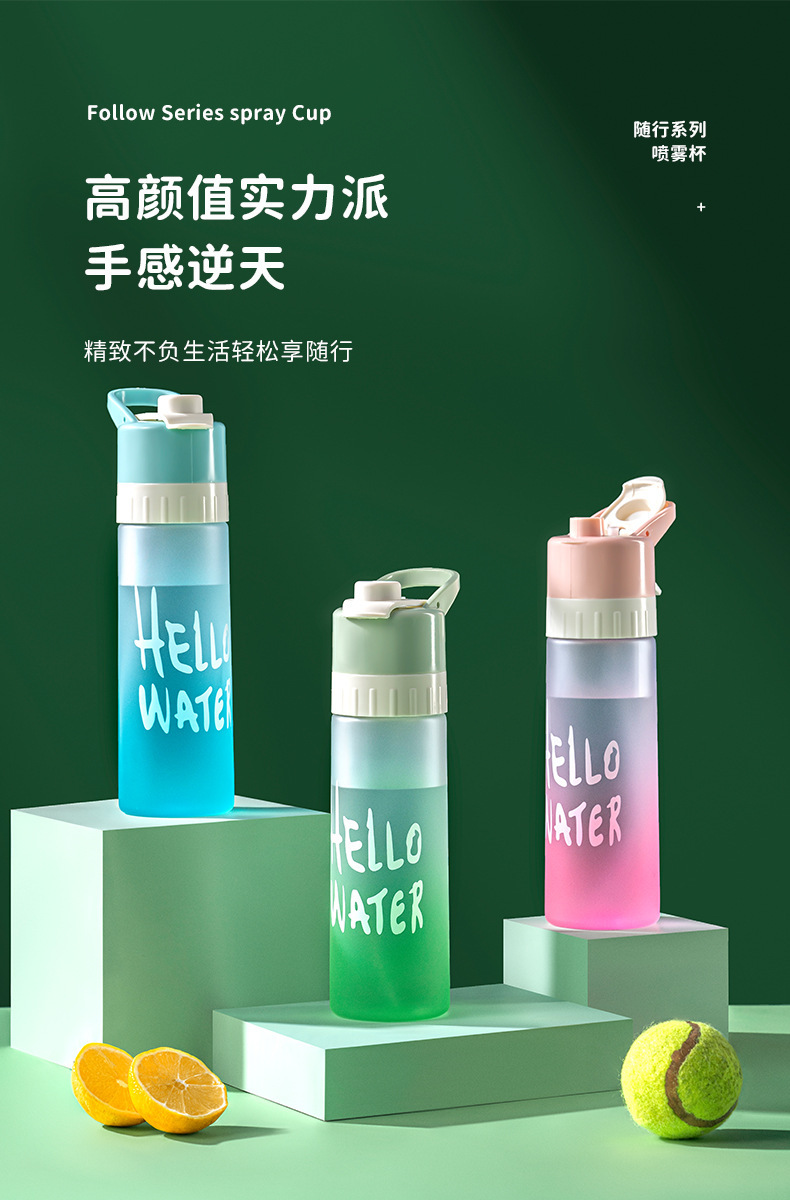 공장 도매 플라스틱 컵 야외 대용량 스프레이 컵 학생 어린이 스포츠 병 컵 드롭 방지 컵