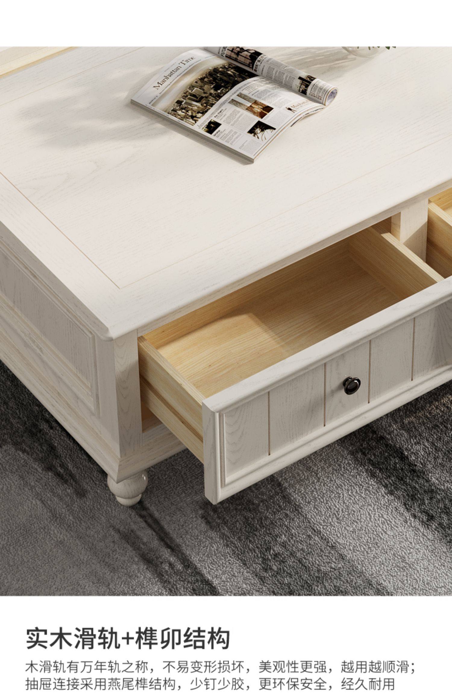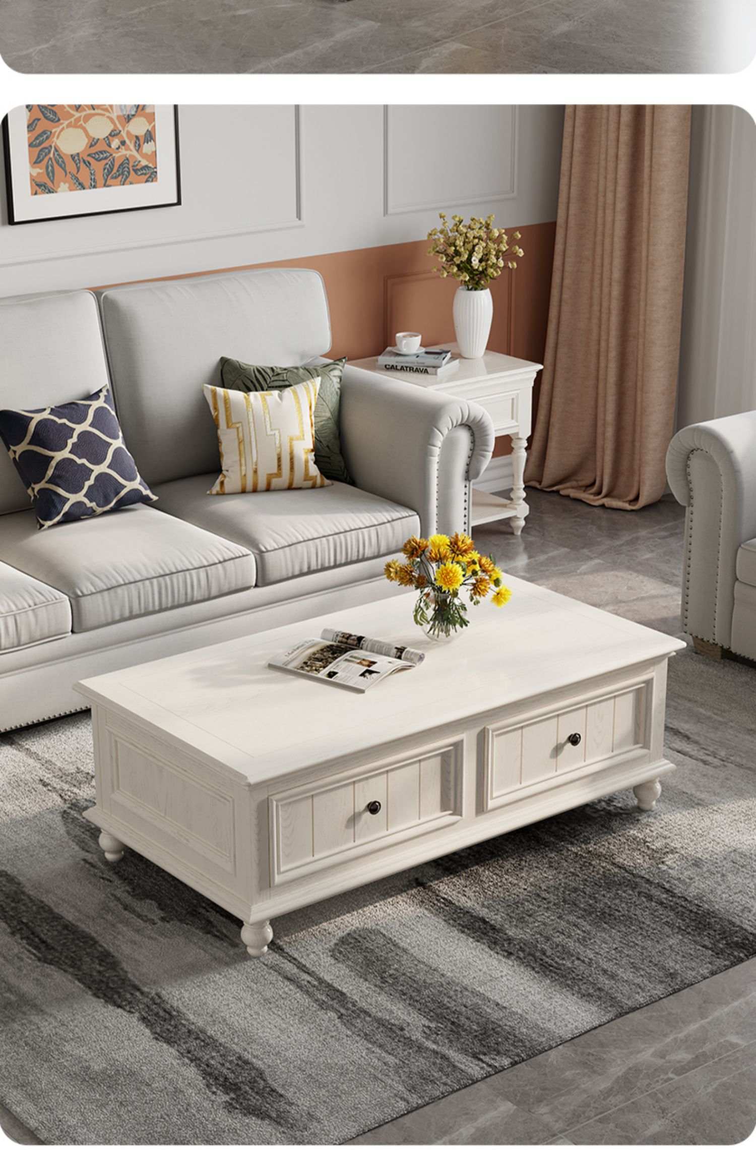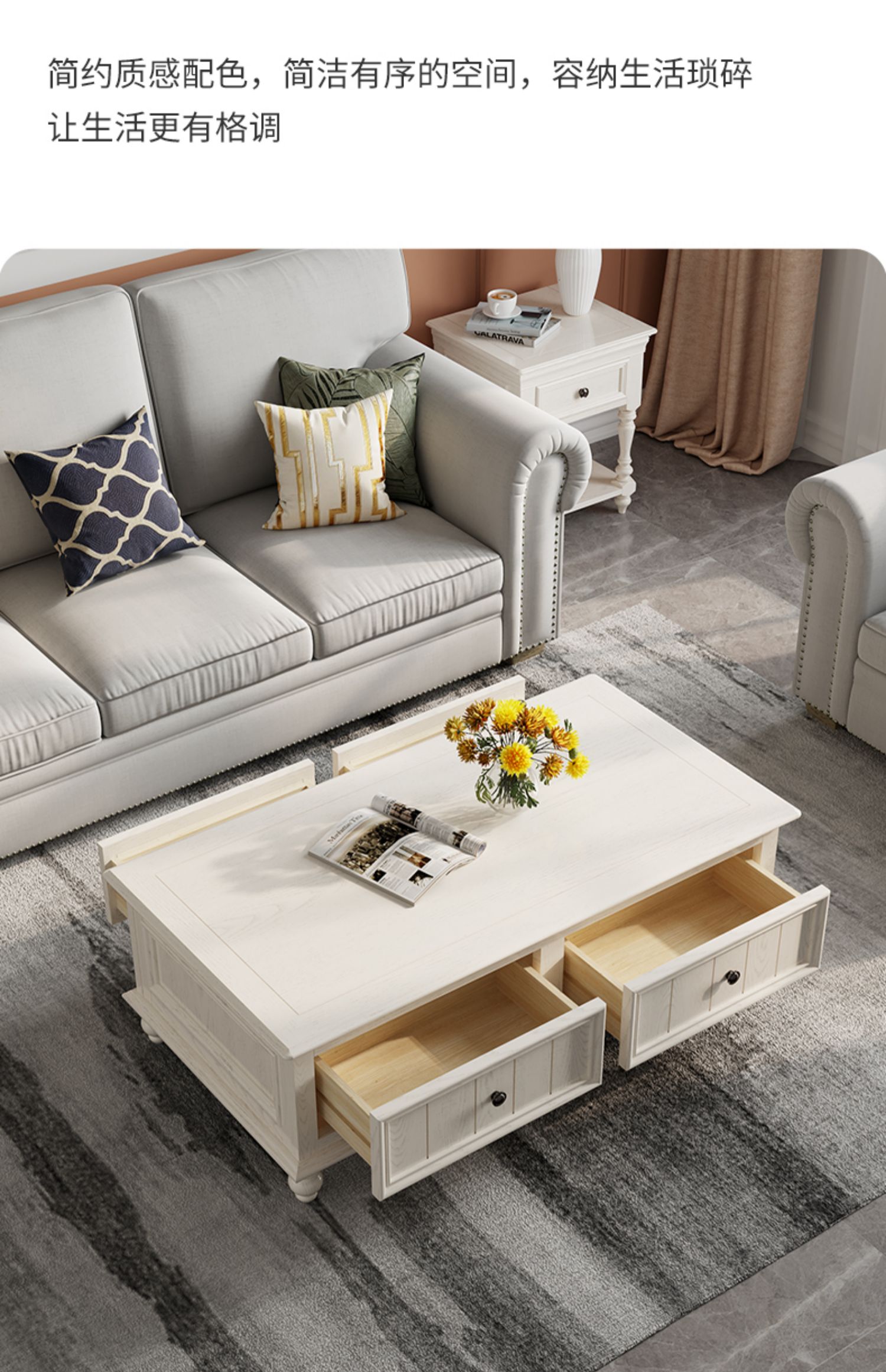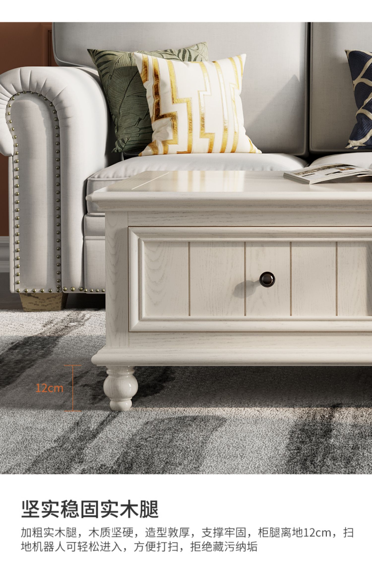 아메리칸 스타일 단단한 나무 커피 테이블 작은 아파트 TV 캐비닛 조합 간단한 현대 거실 북유럽 화이트 홈 가구스토어 가기