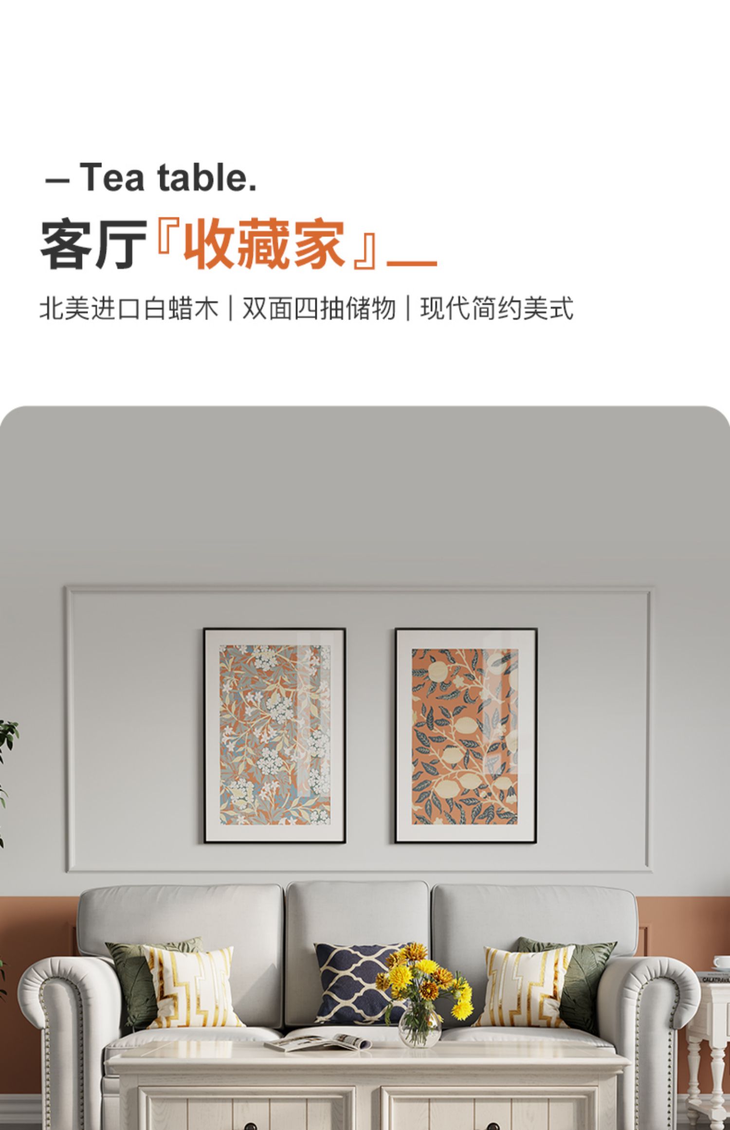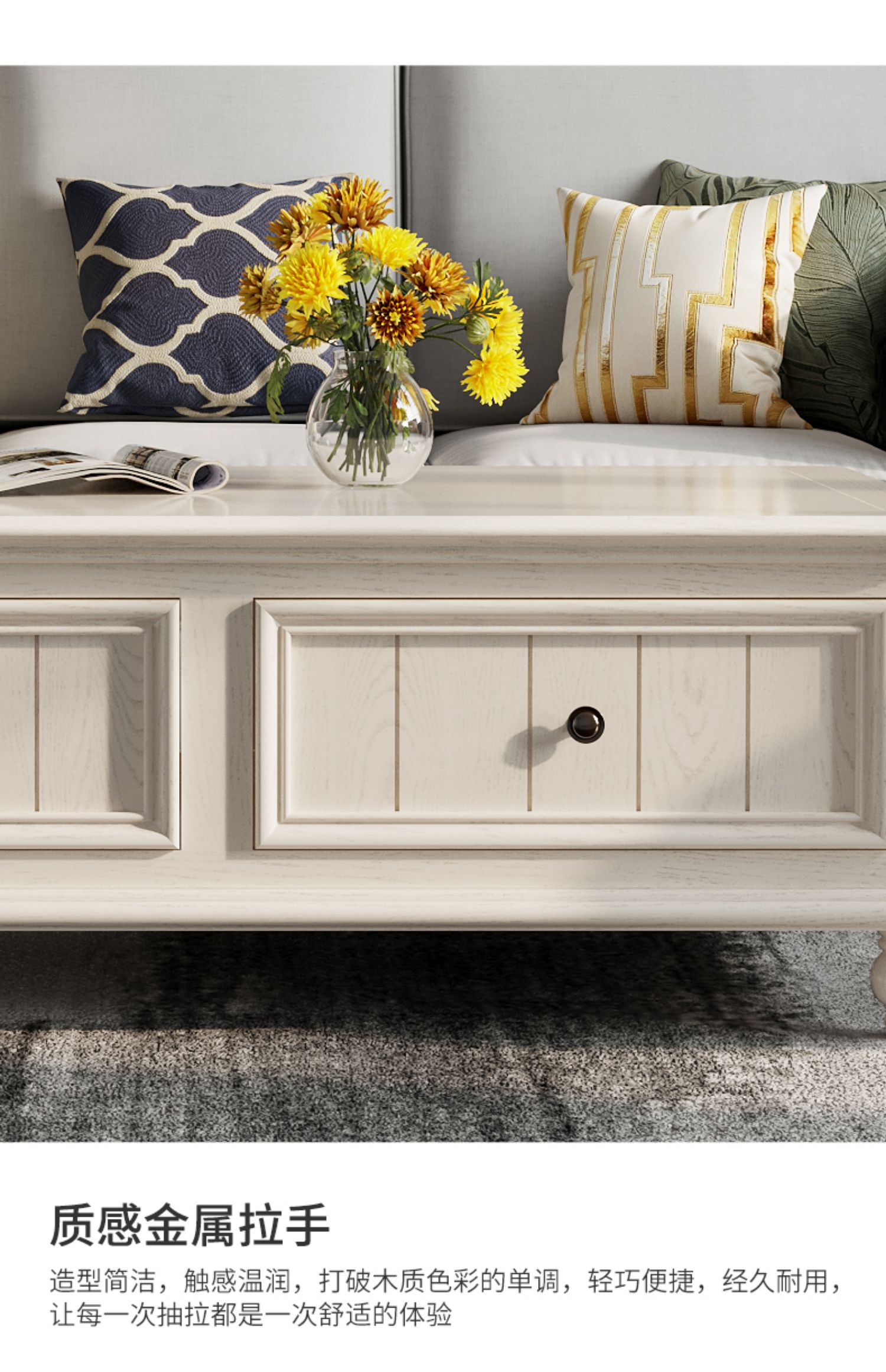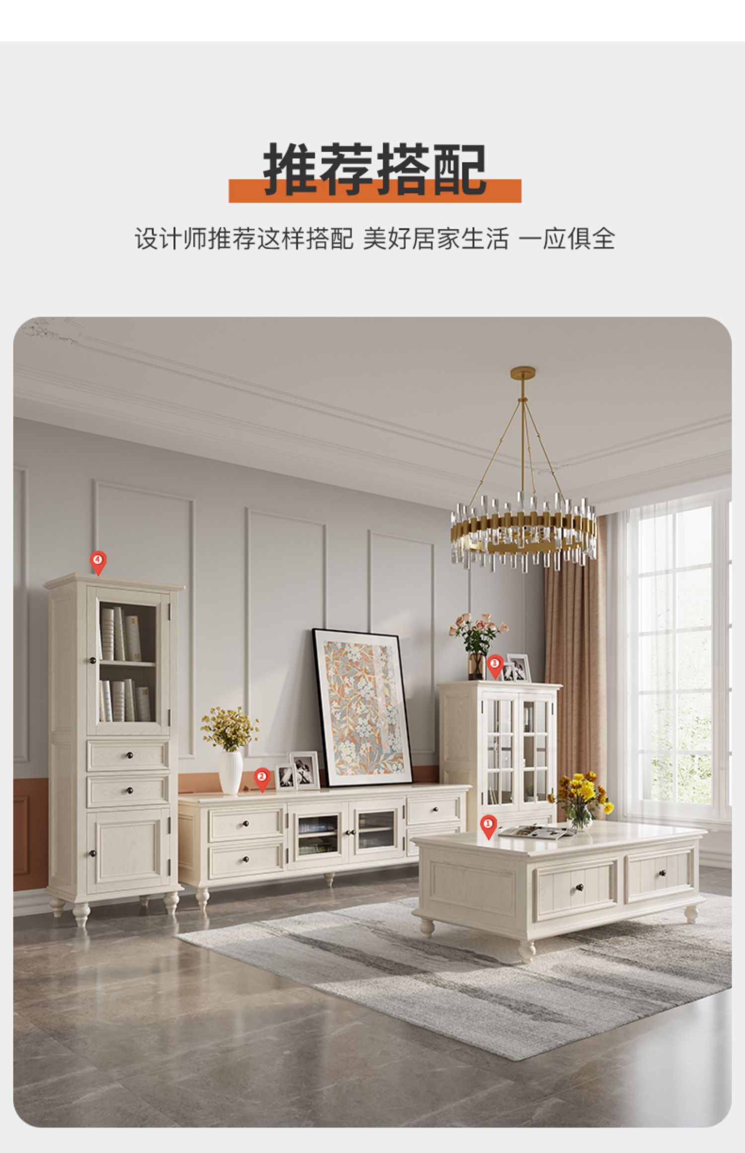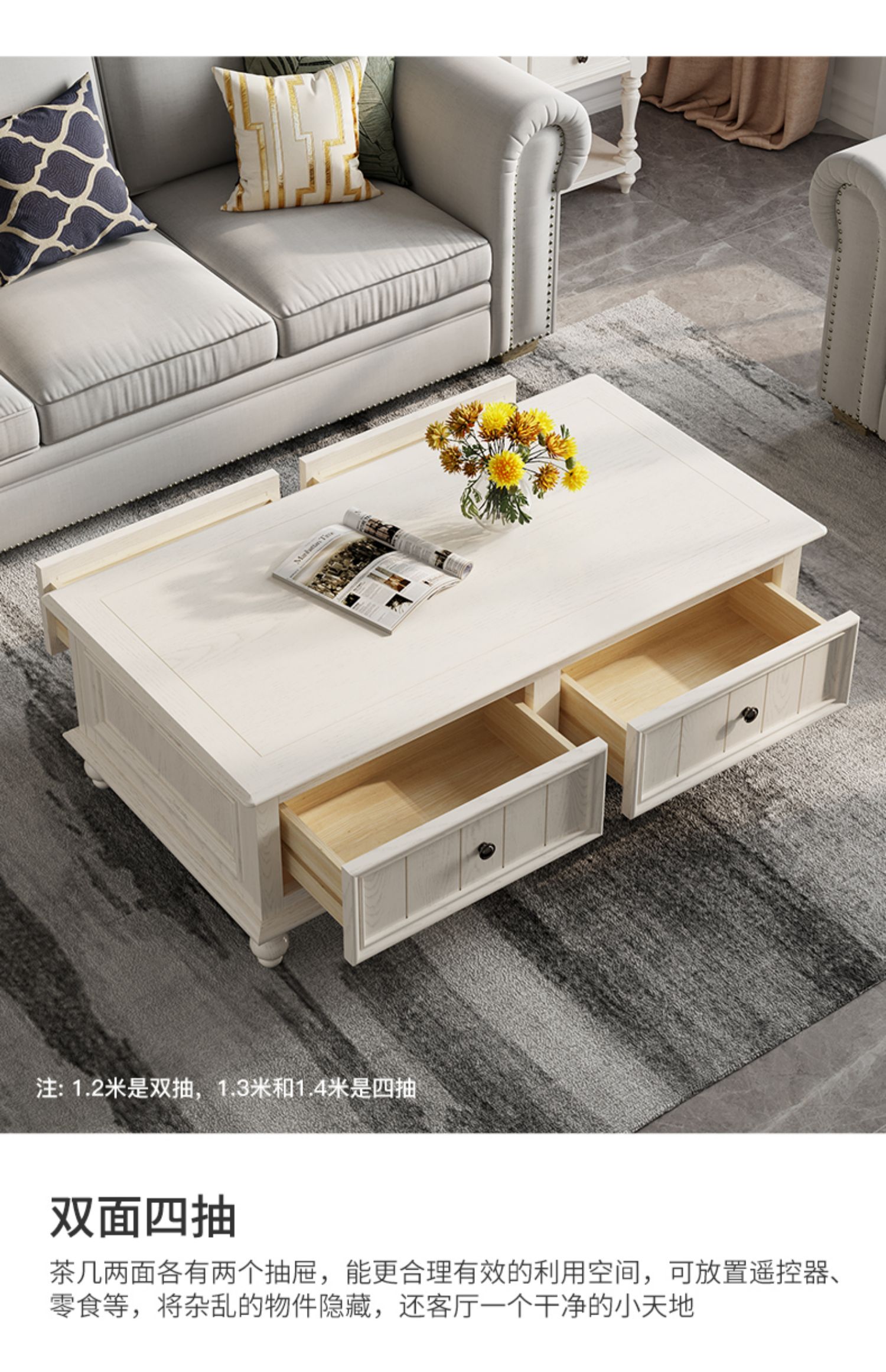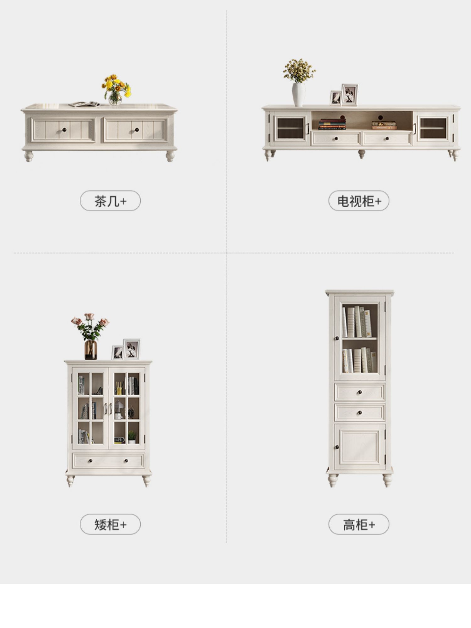 아메리칸 스타일 단단한 나무 커피 테이블 작은 아파트 TV 캐비닛 조합 간단한 현대 거실 북유럽 화이트 홈 가구스토어 가기