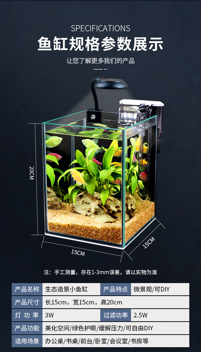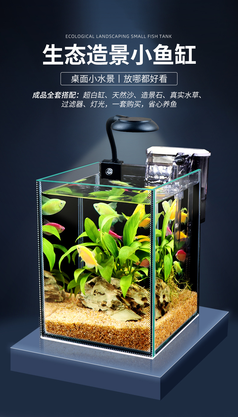 가벼운 창조적 인 물 무료 생태 어항 유리 데스크탑 미니 홈 수족관 데스크탑 미니 소형 어항스토어 가기