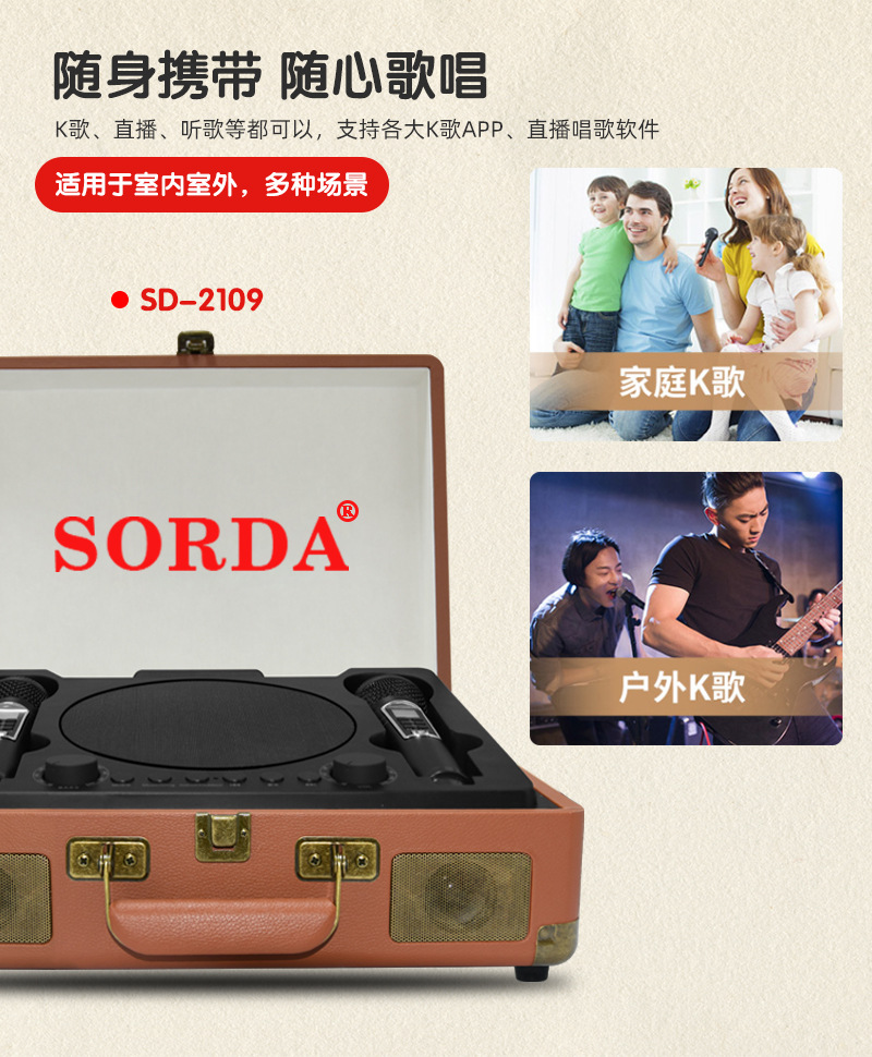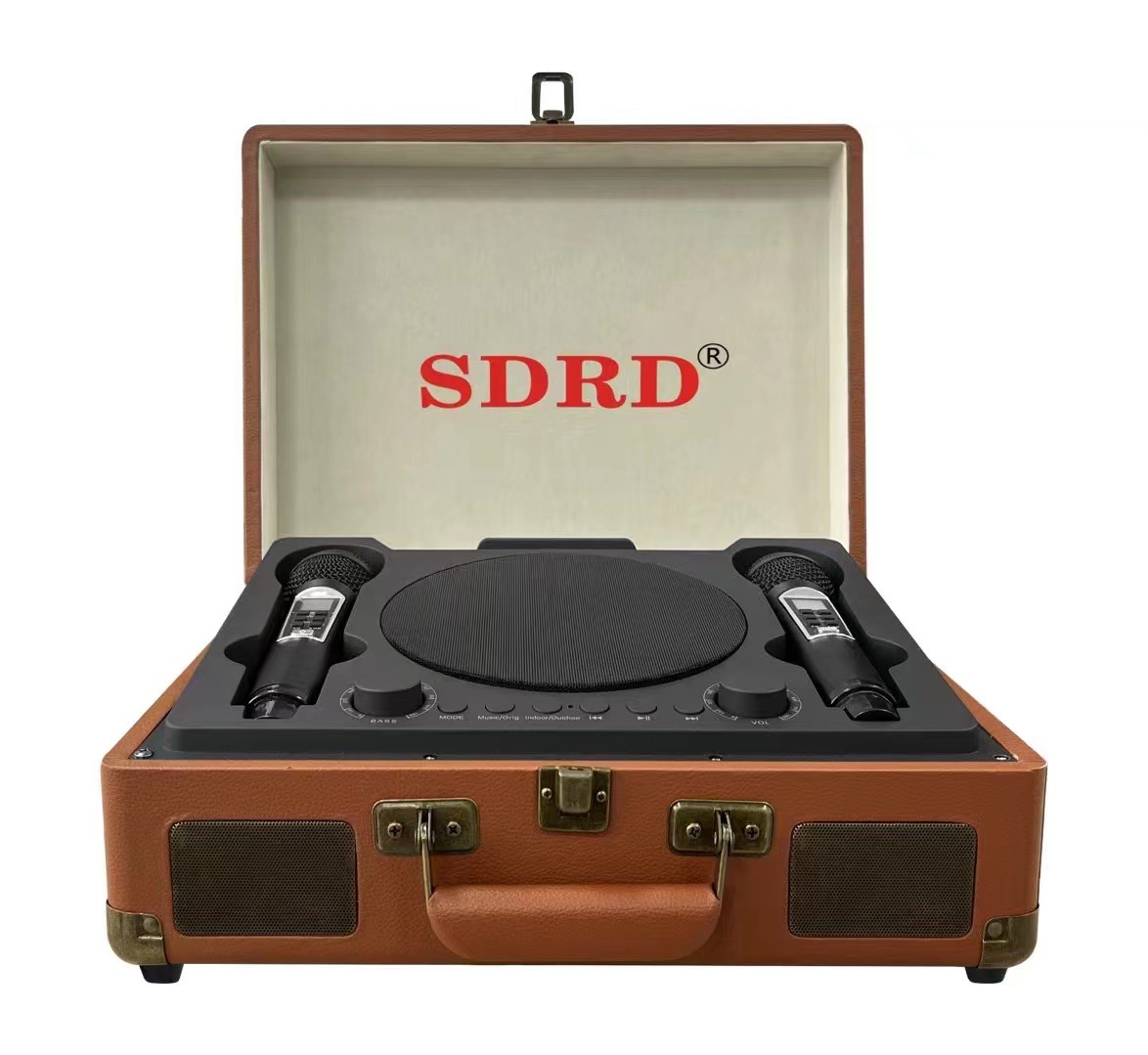SD2109 블루투스 스피커 휴대용 나무 케이스 휴대용 무선 더블 마이 콕 노래 모바일 TV 엔터테인먼트 올인원