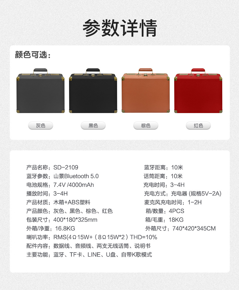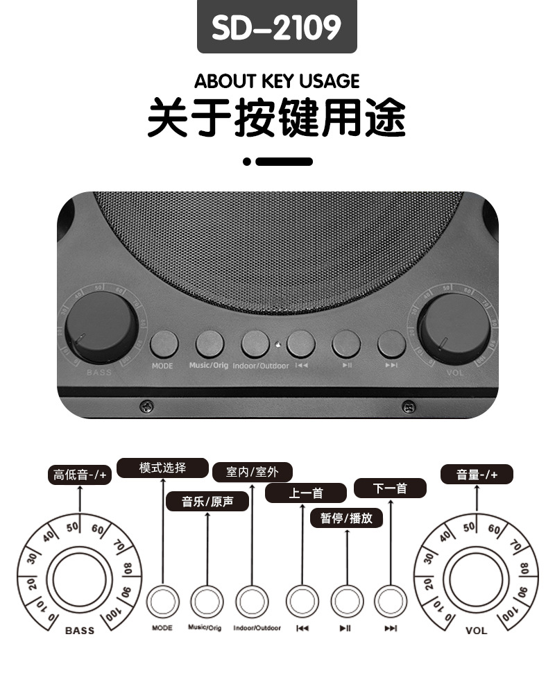 麦功能:调ECH/音量大小/自动充电音箱功能: