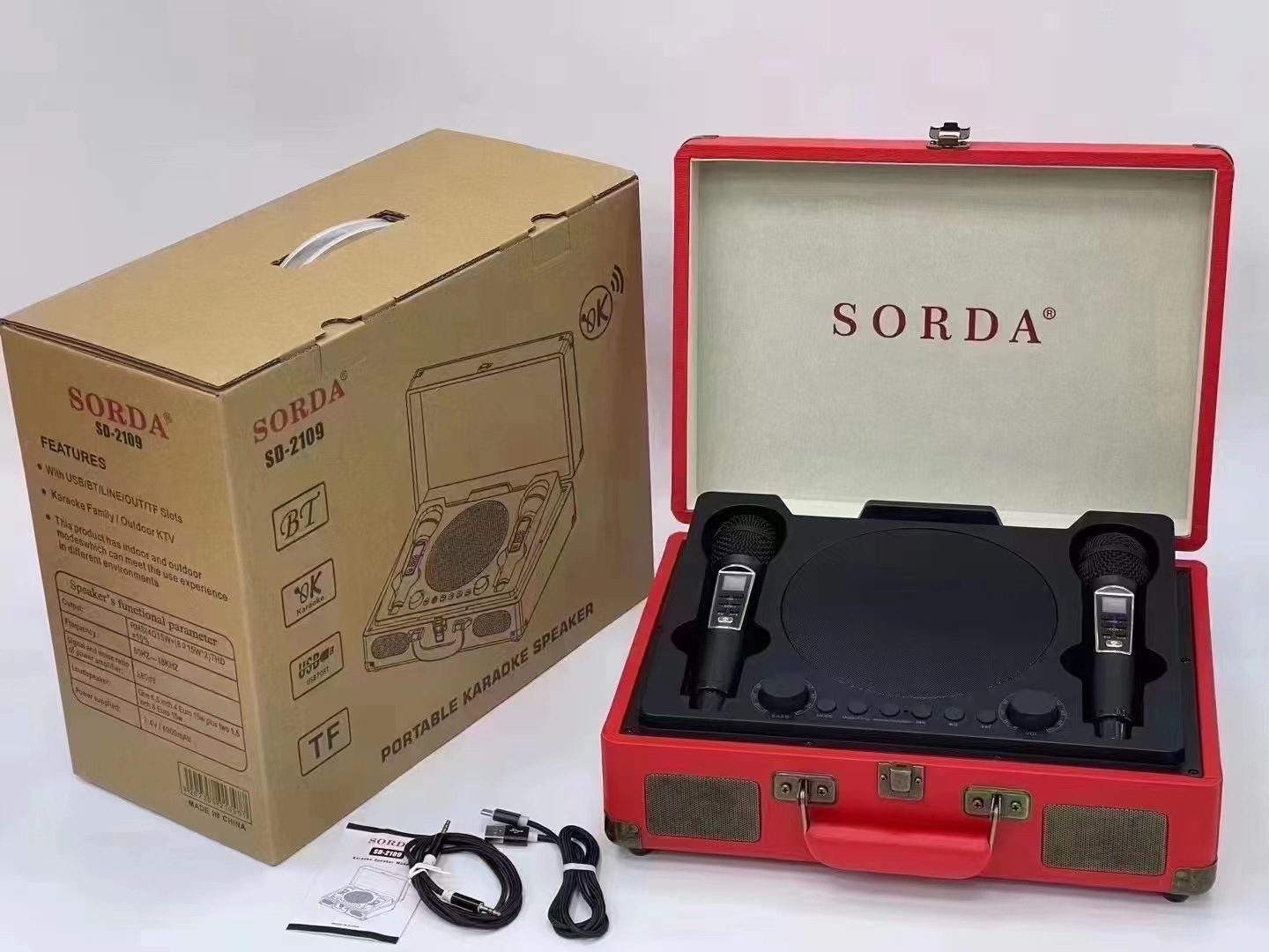 SD2109 블루투스 스피커 휴대용 나무 케이스 휴대용 무선 더블 마이 콕 노래 모바일 TV 엔터테인먼트 올인원스토어 가기