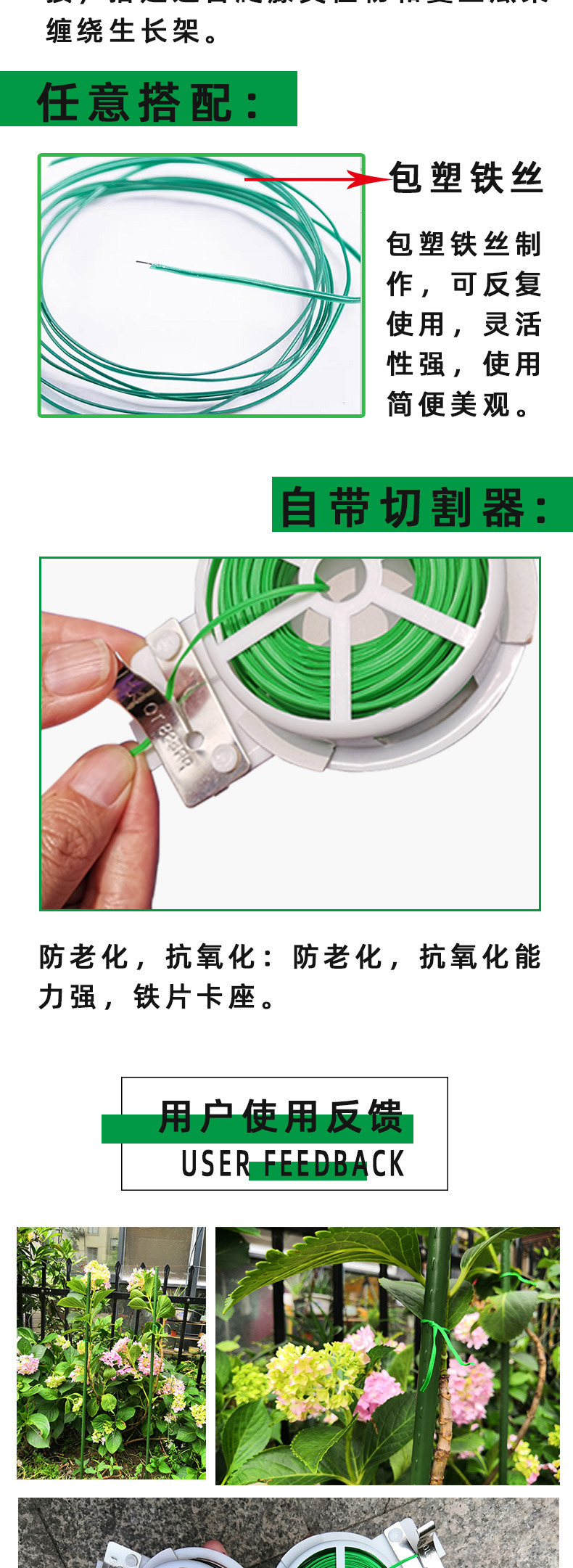 커터 포함 플라스틱 케이블 타이 와이어 바인딩 원예 분재 고정 바인딩 로프 바인딩 와이어 50 미터 20 미터스토어 가기
