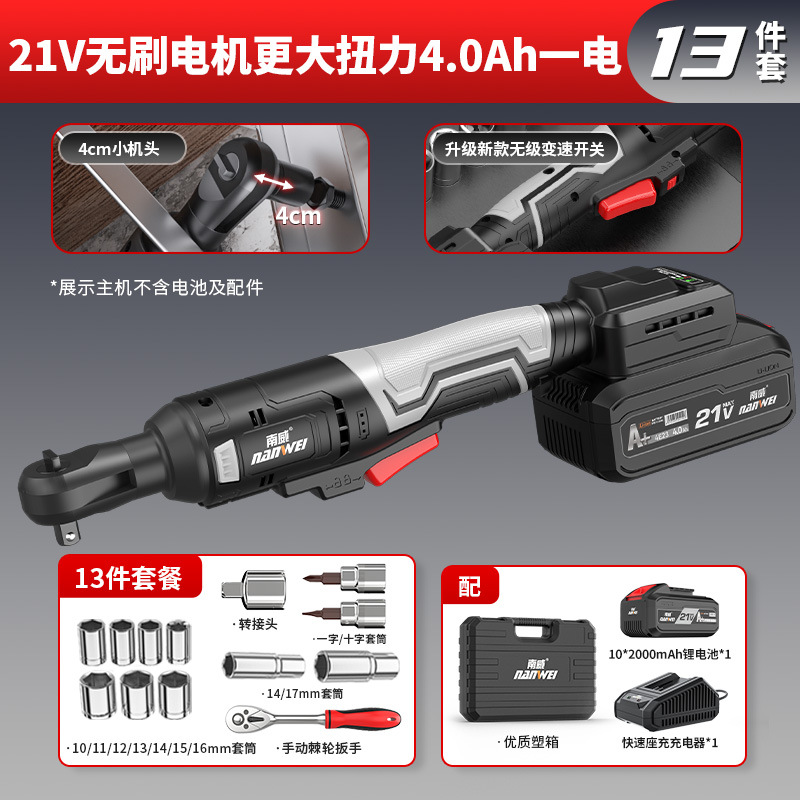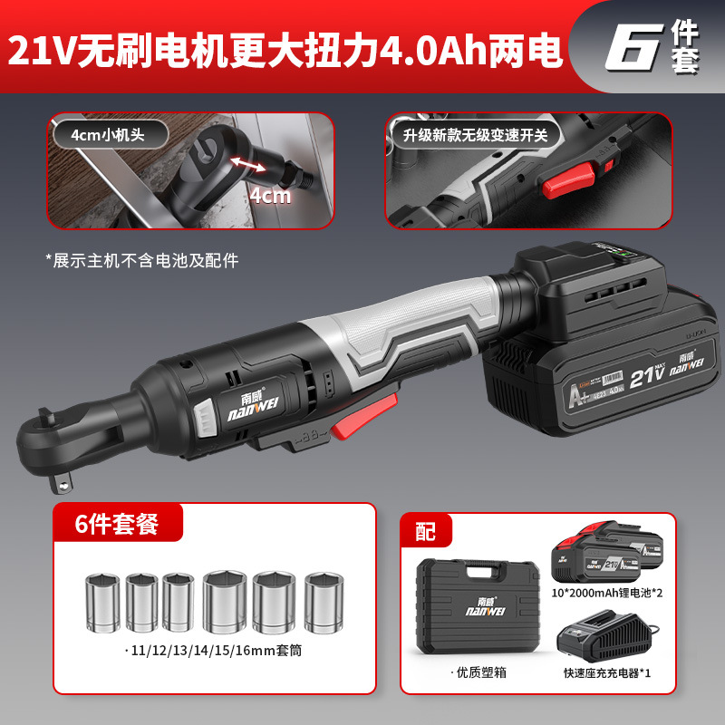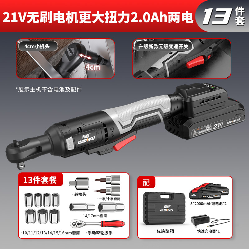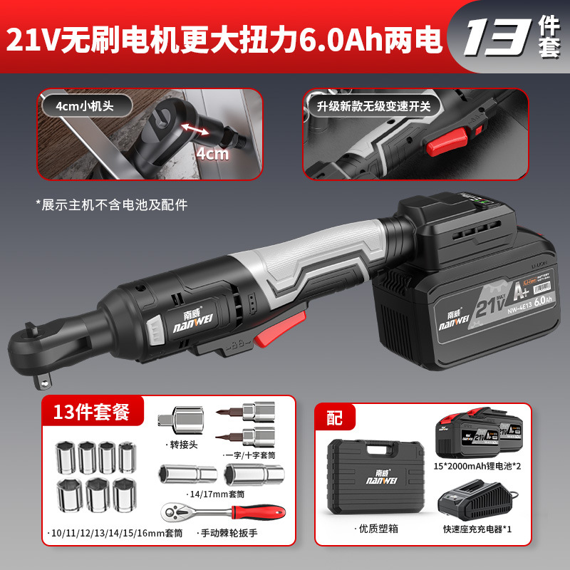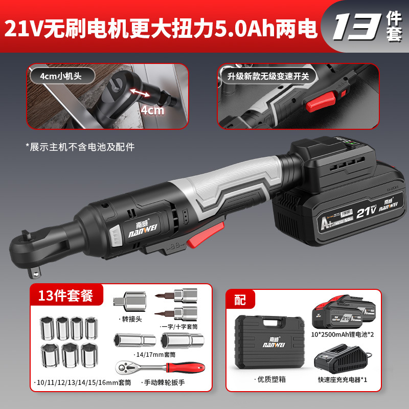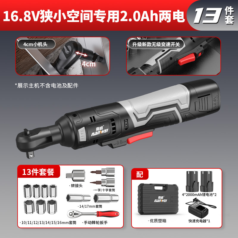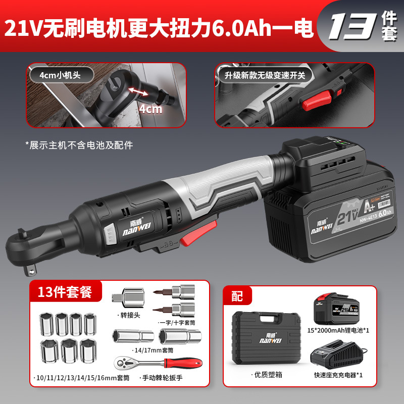 Nanwei 전기 도구 전기 래칫 렌치 트러스 전기 렌치 90 도 직각 렌치 무대 웨딩 건설스토어 가기