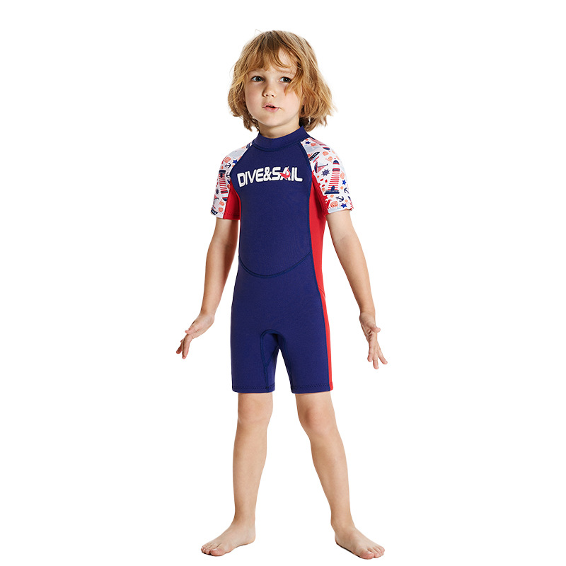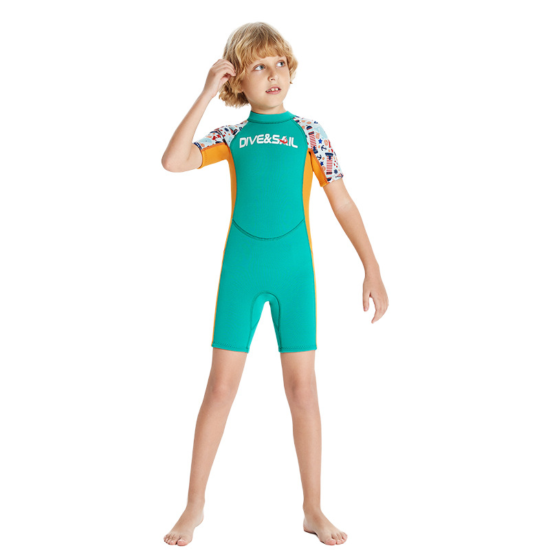 어린이 다이빙 세트 따뜻한 2.5mm 반팔 원피스 다이빙 세트 남자의 중년 이상 어린이의 두꺼운 방한 수영 서핑 세트