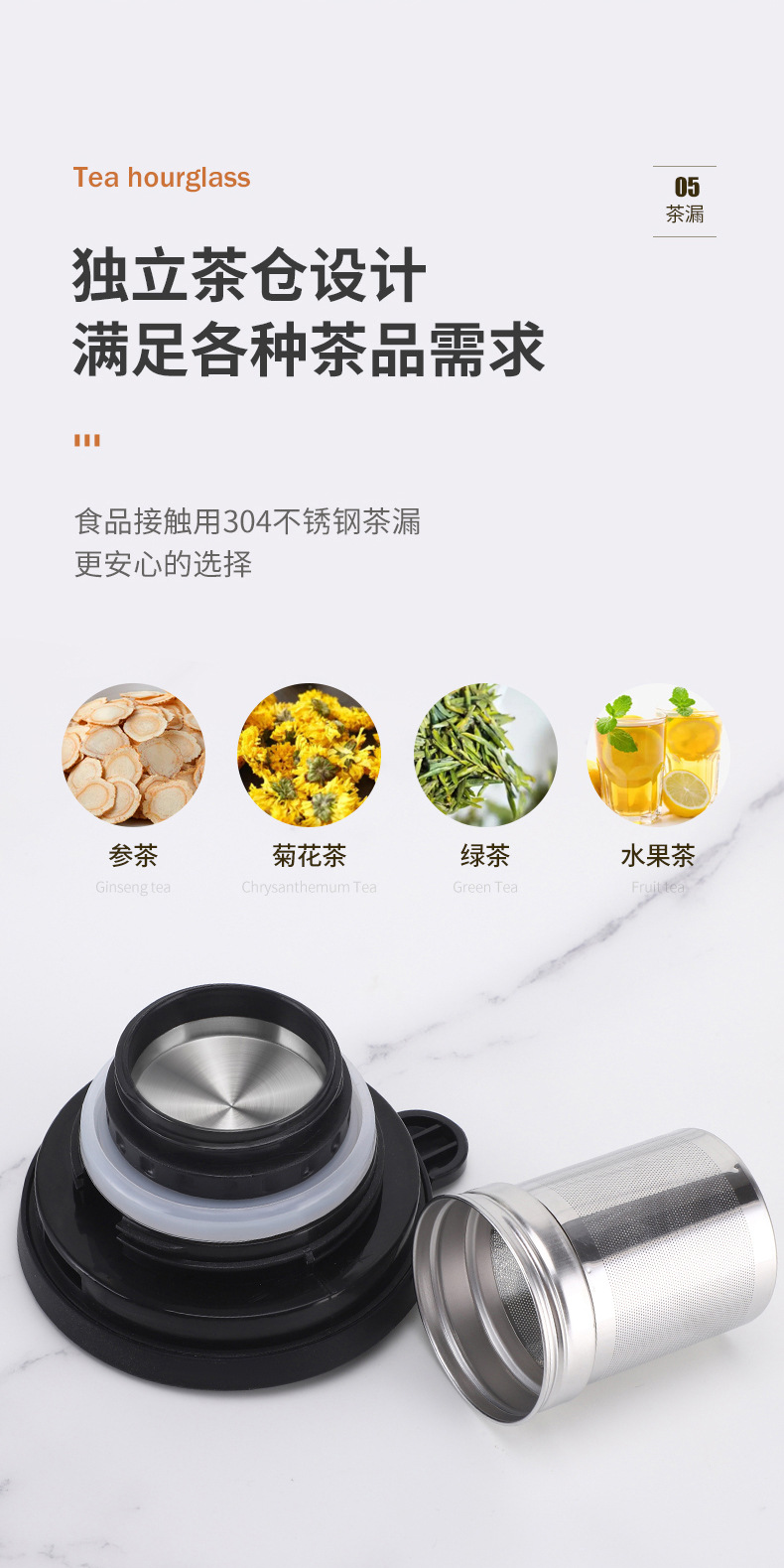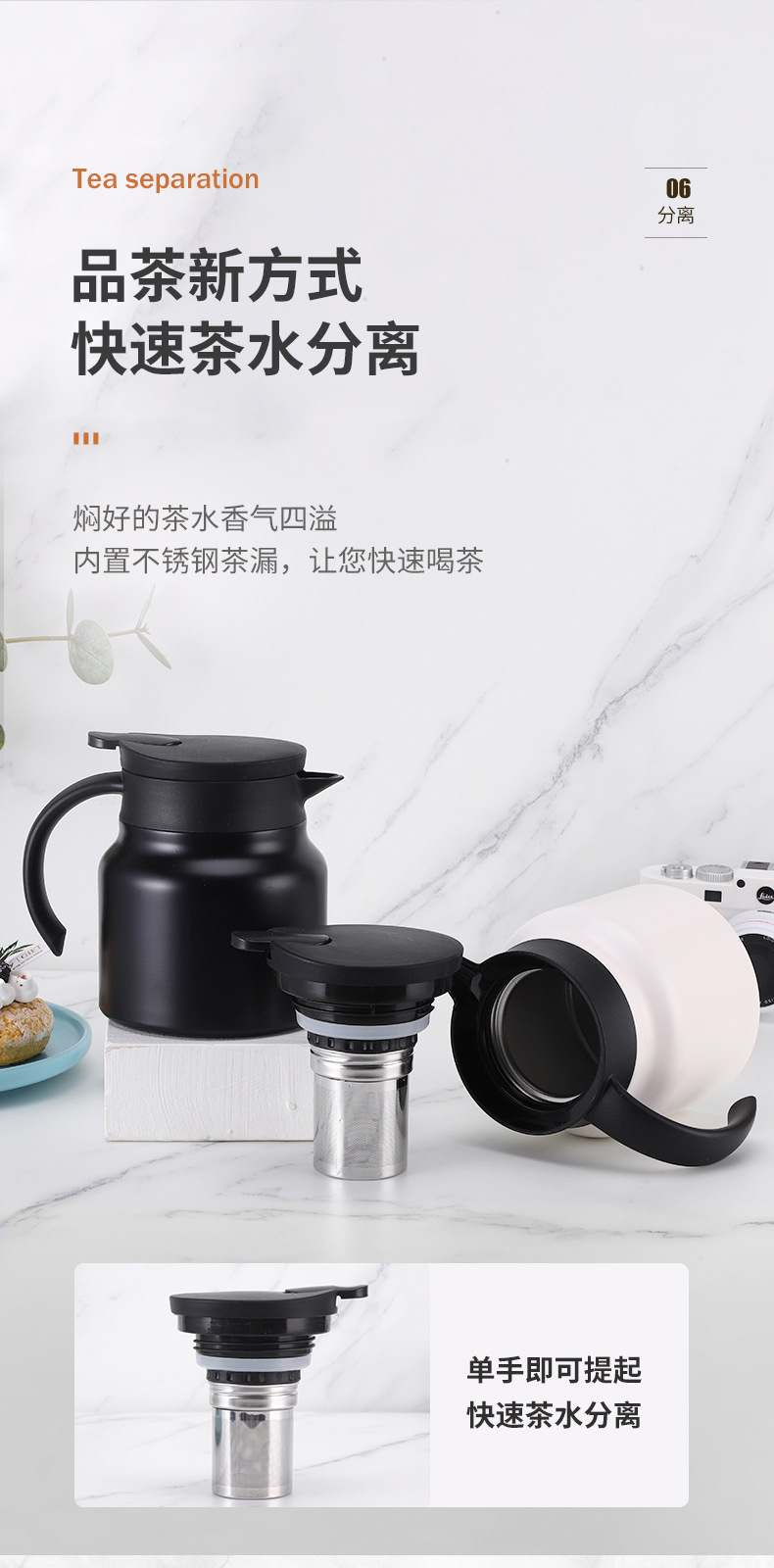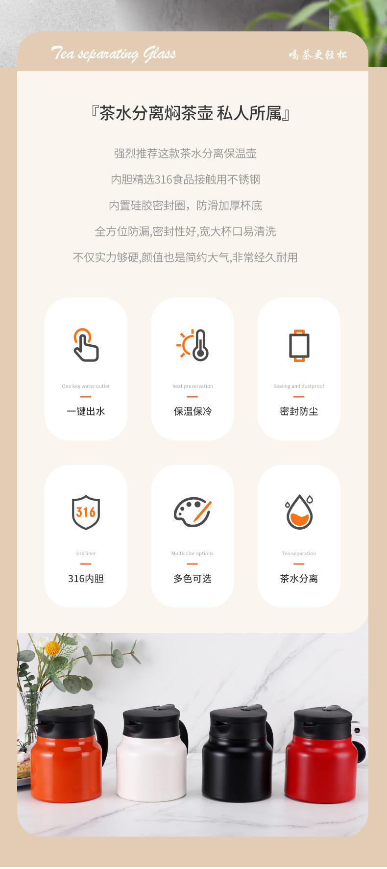 316 스테인리스 스틸 차 우려내기용 주전자, 차수분리 보온 주전자, 가정용 대용량 차 우려내기용 주전자, 비즈니스 사무용 선물 주전자