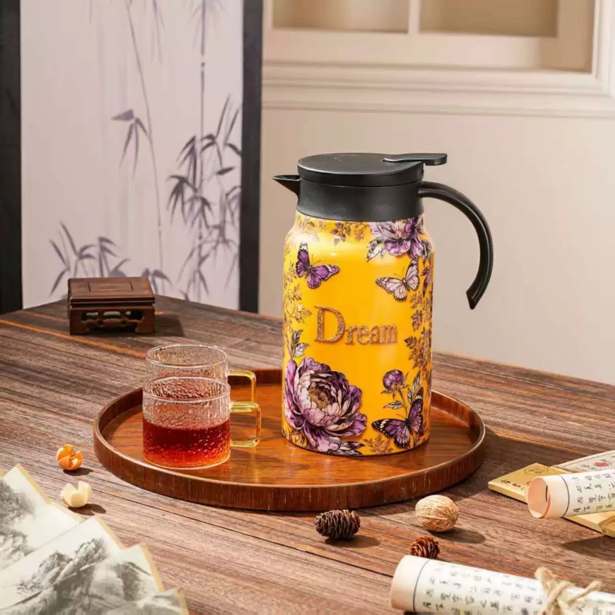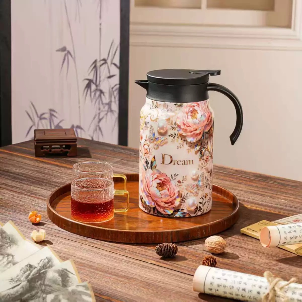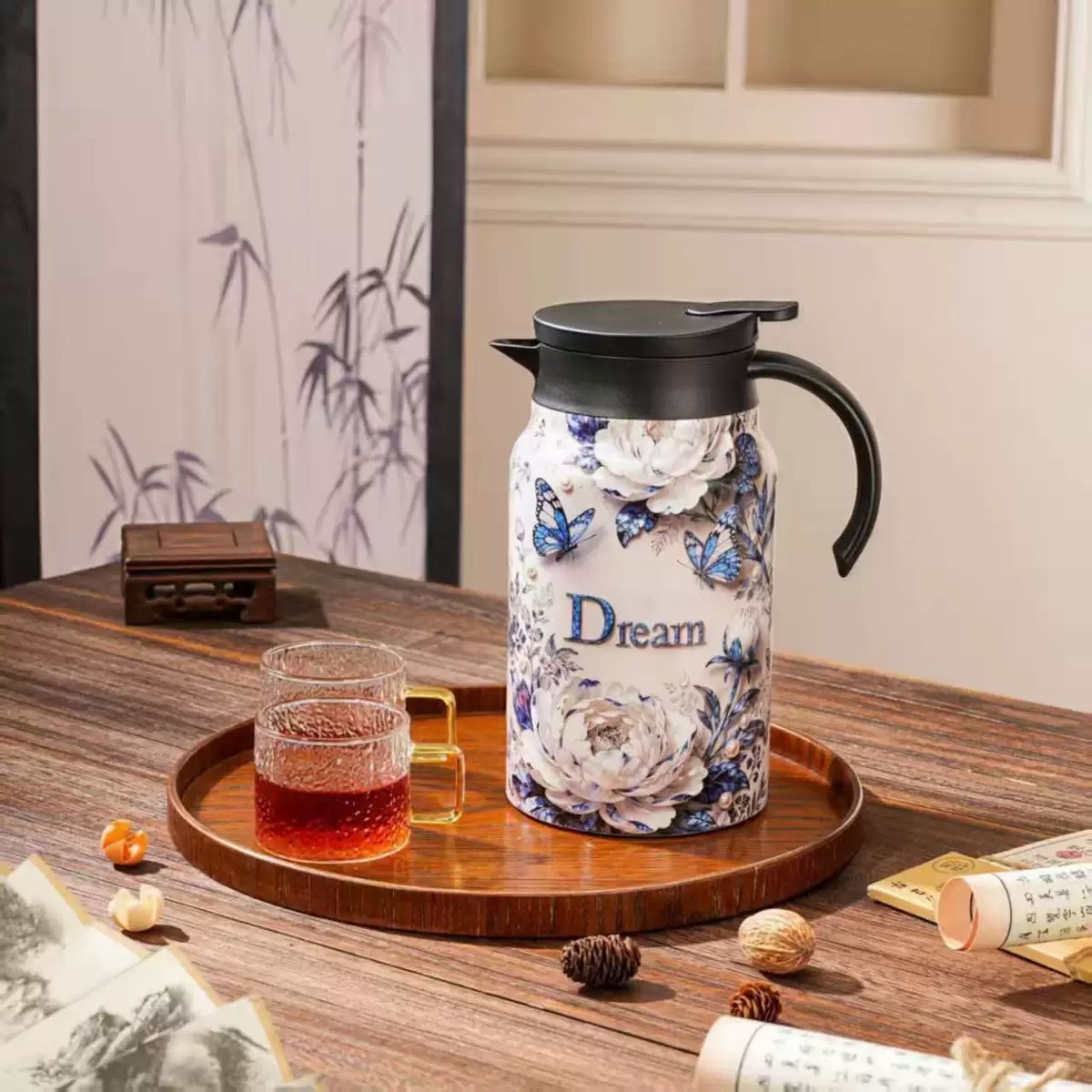 316 스테인리스 스틸 차 우려내기용 주전자, 차수분리 보온 주전자, 가정용 대용량 차 우려내기용 주전자, 비즈니스 사무용 선물 주전자